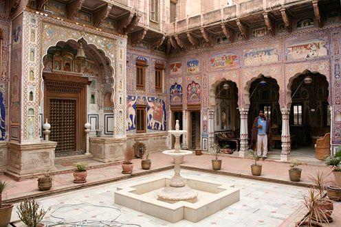 Havelis, for instance, are townhouses or mansions of the merchant class and are primarily found in Gujarat, Rajasthan, and Punjab. Others had fortifications. One or twostory buildings with exquisitely carved arched columns could be built around their courtyards. Many of them, including those with vaulted gateways, arched windows, pillars, and lattice windows, were influenced by Mughal architecture.