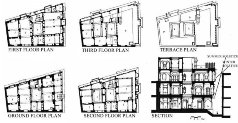 Open spaces: The courtyard dimension is generally small and generally varies from 1.8 m to 5 m spans.