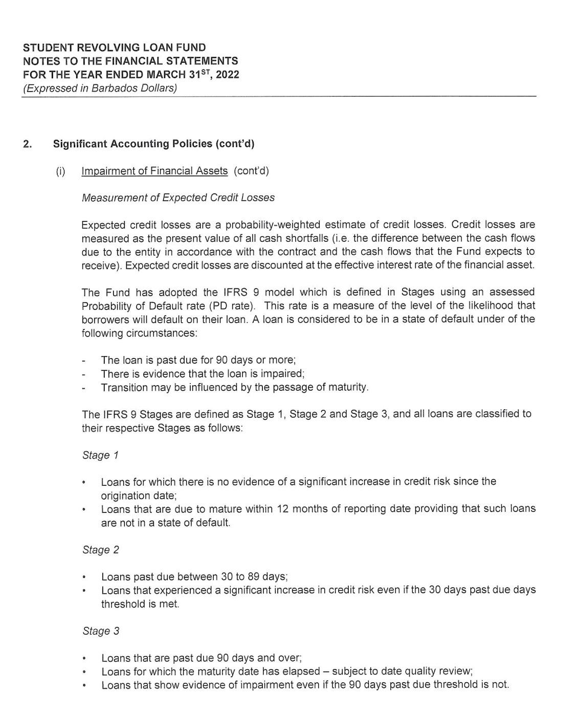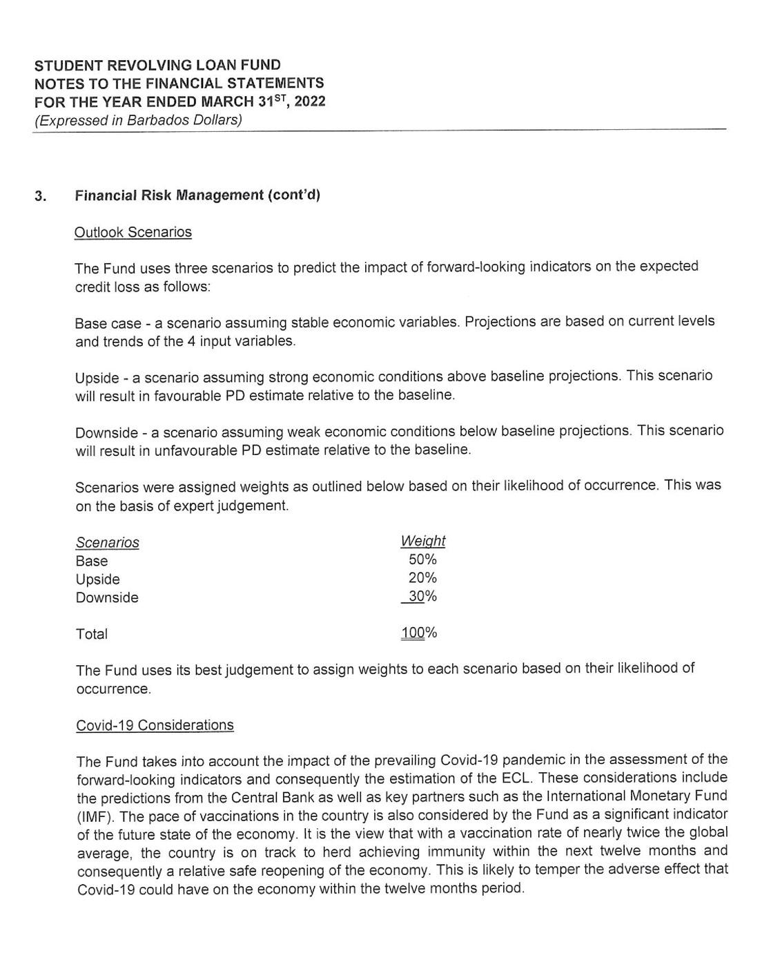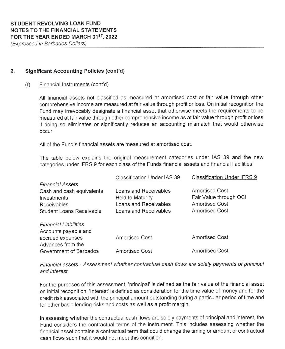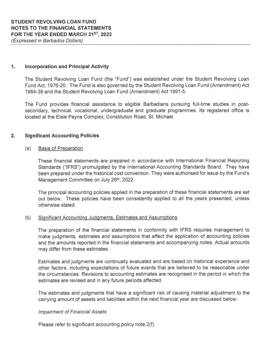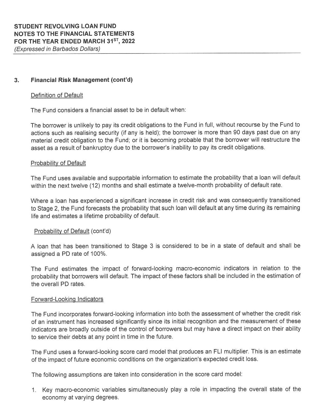its investment portfolio of $50 million being its largest single asset. Despite the unfavorable economic environment receipts from the repayment of loans continue to hold steady at $17 million. As a consequence, the SRLF is well poised to continue to provide affordable financing to Barbadians who wish to pursue their educational goals.