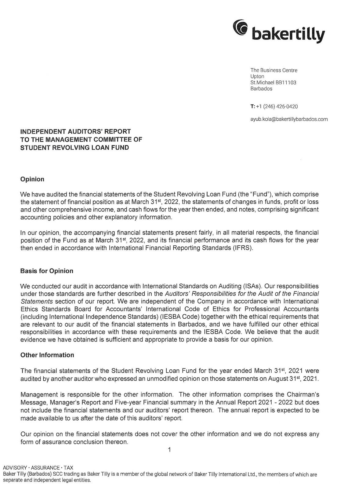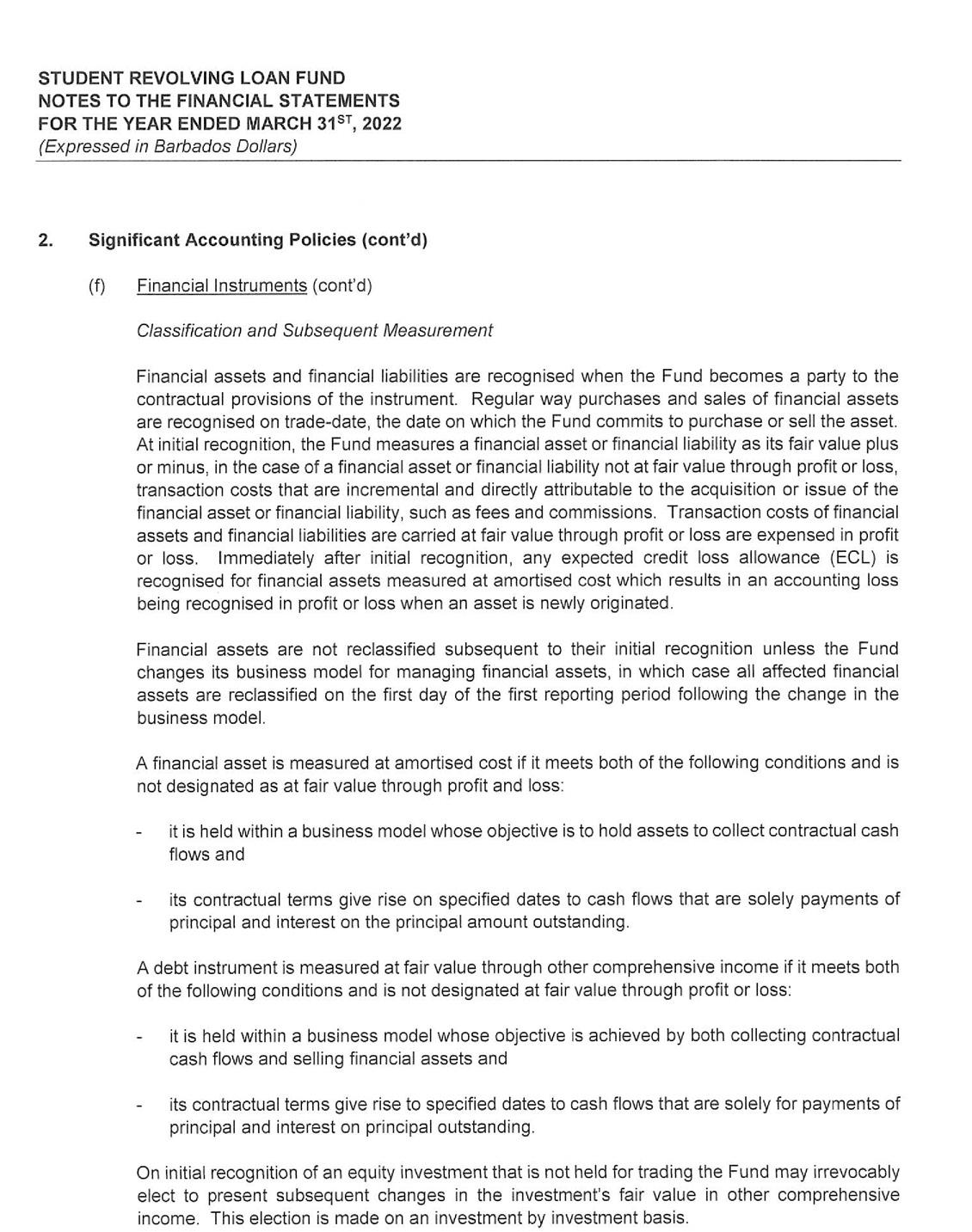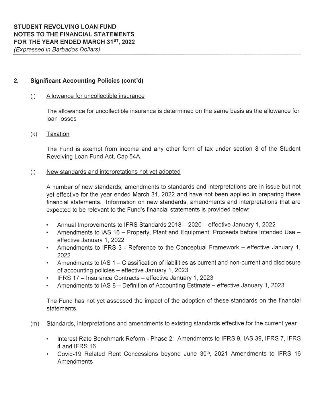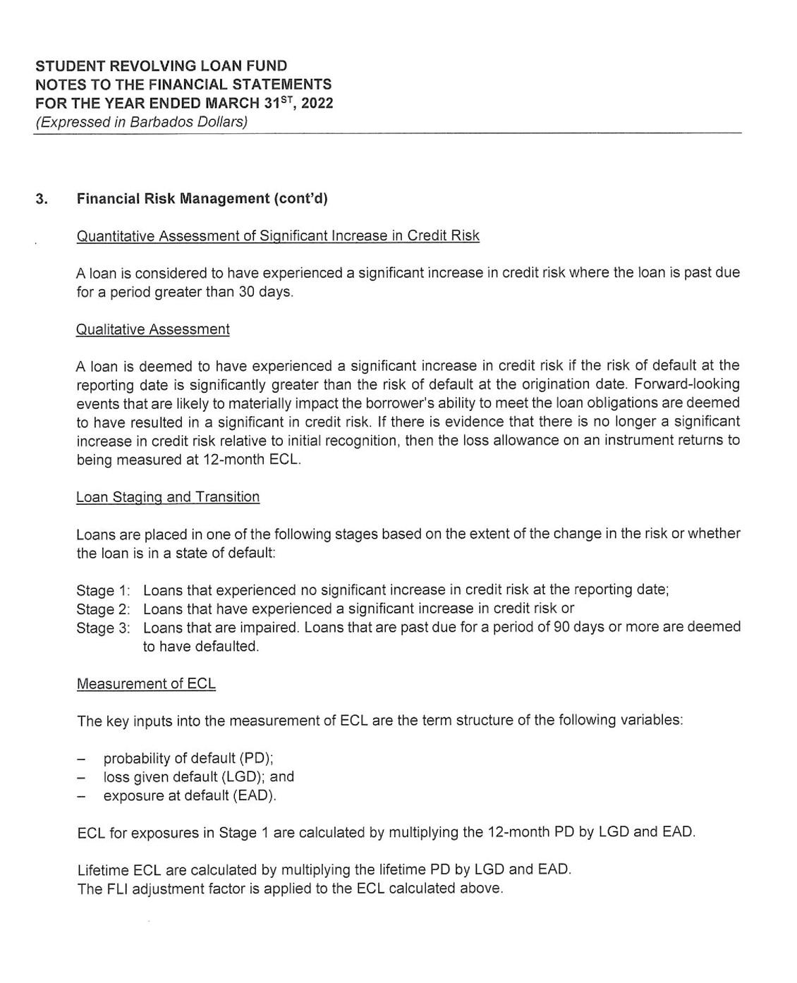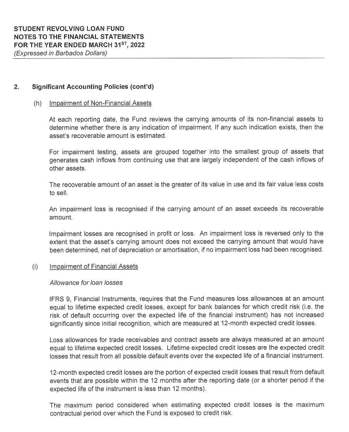 its investment portfolio of $50 million being its largest single asset. Despite the unfavorable economic environment receipts from the repayment of loans continue to hold steady at $17 million. As a consequence, the SRLF is well poised to continue to provide affordable financing to Barbadians who wish to pursue their educational goals.
