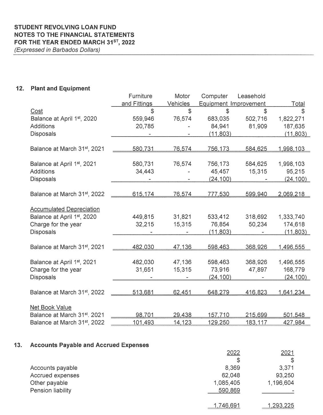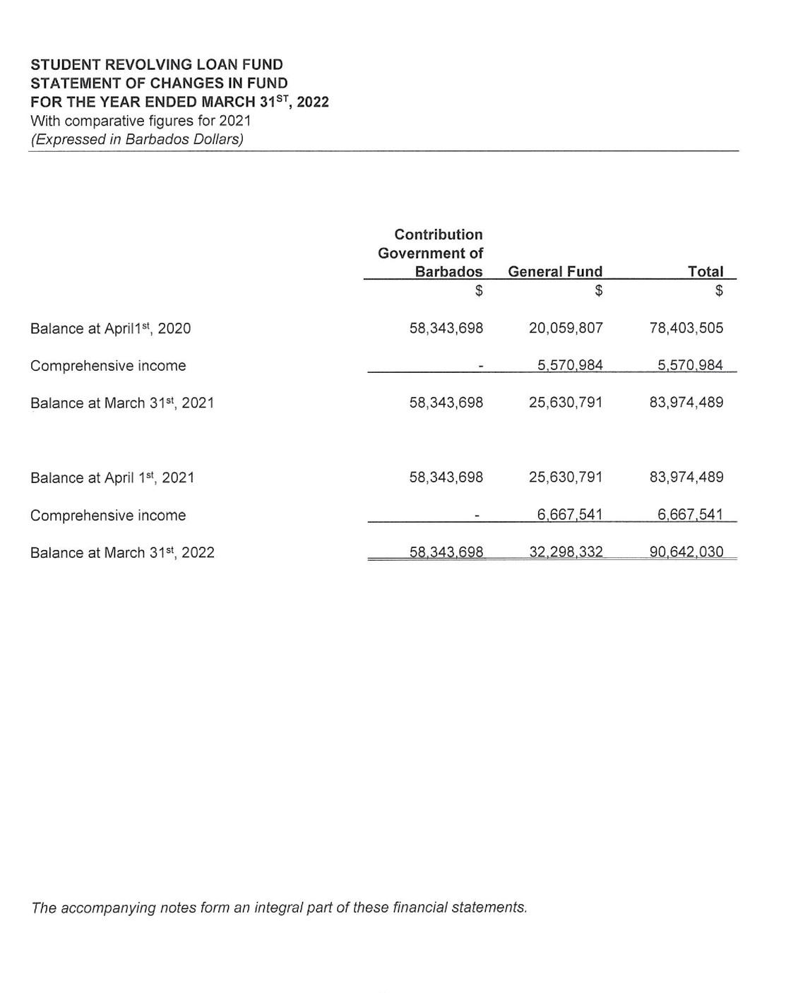For the year ending March 31, 2022, the SRLF generated a Net Income of $6.67 million dollars, which represents a surplus of $1.10 million or 16.5% over the previous year’s surplus of $5.57 million. The main reason contributing to the increased income for the year under review was the significant decrease in the allowance for loan losses. When compared to the previous year, the reduction in allowances for loan losses almost doubled. In 2021, this amount was $2.55 million and in 2022 $5.03 million. During the financial year, the SRLF was able to return more loans to the productive category of its portfolio, thereby reducing the need to make provisions for a substantial amount of loan losses.
