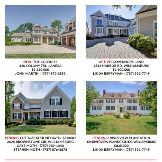 The company has coverage in the Williamsburg, Greater Richmond, Hampton Roads, and the Wintergreen markets. To date we have over 187 experienced agents and selectively growing each day. The firm also has a Luxury component that specializes in Estates, Higher-End and Historic Homes, Land, and Waterfront properties.