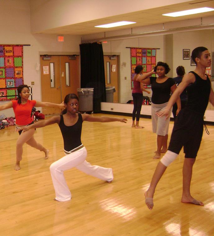 Programs that enhanced the students’ dance experience blossomed like a flower as the students participated in peer dance mentoring, collaborating with peers and guest artists, field trips, performing, and taking master classes in the community, statewide and nationally. Dancers practiced after school, on the weekends, and during school breaks. The summer activities include Dance Bootcamp and American Dance Festival Outreach. As part of community outreach, a youth dance clinic was created to allow aspiring dance teachers to work with children ages 5-13.