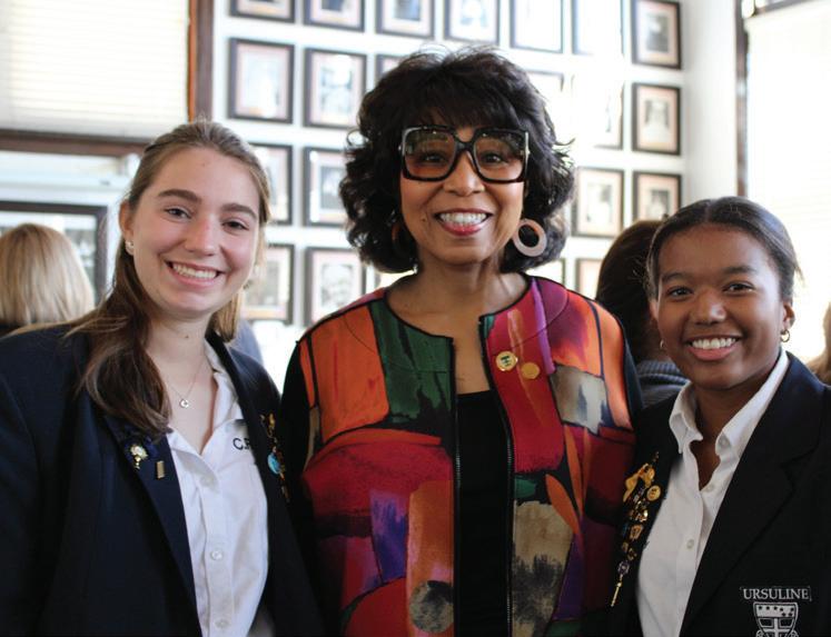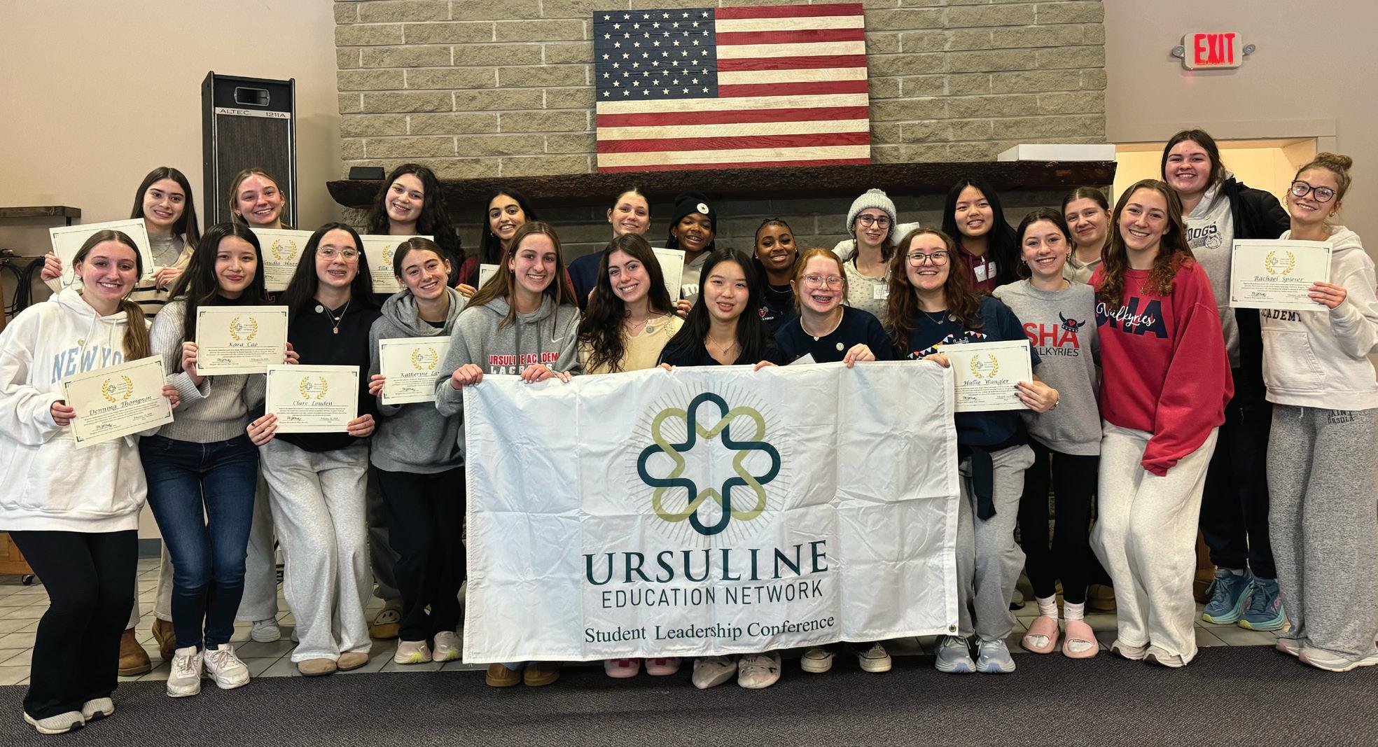 Throughout the school year, some of the Academy’s high school student leaders participated virtually in “What’s U.P.?” - Zoom conversations on Ursuline-piloted programs, and a virtual student conference titled “AI: Brave New World.” A small group of students also traveled to West Harrison, Indiana, for the Student Leadership Conference - “Be as Ministers and Servants: Leadership from St. Angela’s First Counsel.” Several juniors, along with Principal Sue Heidel ’85 and high school U.S. Government teacher, Christina Schlaudecker, joined other UEN schools for the 69th United Nations Commission on the Status of Women conference in New York, where they examined the Beijing Declaration and Platform for Action. Other opportunities included annual UEN Student Service and Athletic Awards and an Ursuline Schools’ volleyball tournament hosted by Ursuline Academy in Dedham, Massachusetts.
