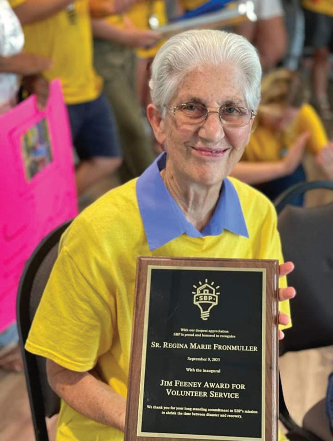 SRM’s work with SBP began after Hurricane Katrina. She saw a need in the community and was moved to respond. She also launched “Nuns Build,” an annual effort uniting religious sisters nationwide to rebuild homes and serve communities in need. She was instrumental in the creation of Ursuline Links - an international service exchange between Ursuline schools. SRM has called upon Ursuline students and staff in St. Louis, Missouri, and Forest Gate, London, to serve SBP throughout these years. For nearly 20 years, she has inspired almost 500 volunteers to help rebuild over 100 homes and has raised over $450,000 for SBP. Through her fundraising efforts, she has made 13 Ursuline-sponsored homes possible. In honor of her service, SRM received SBP’s inaugural Jim Feeney Award for Volunteer Service in 2023.