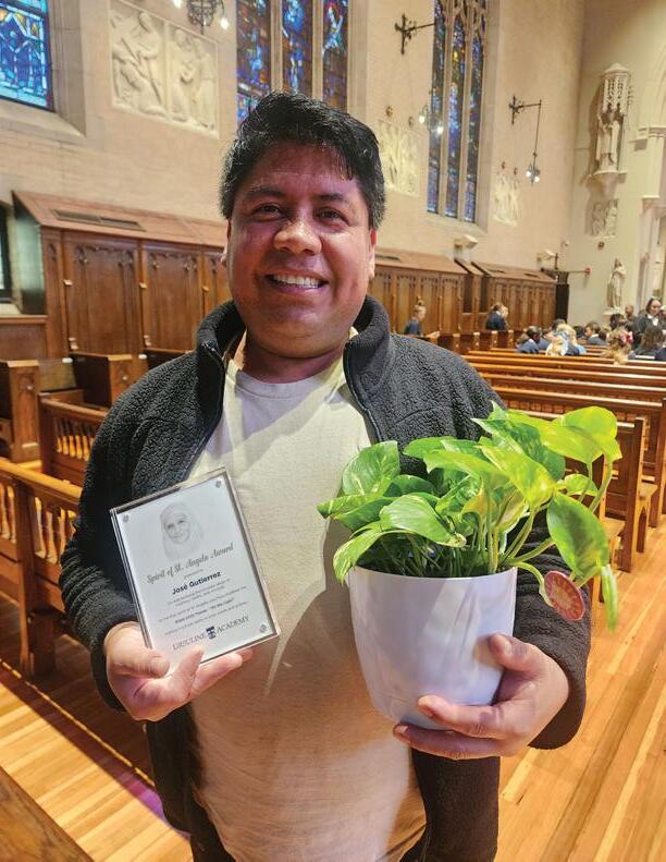 Last school year, as an Academy, we celebrated the theme, “Be the Light.” In recognition of the UA faculty and staff's commitment to Ursuline education, we created the Spirit of St. Angela Award. José Gutierrez was the inaugural recipient of the Spirit of St. Angela Award, and we celebrated his achievement during the Academy Mass in April.