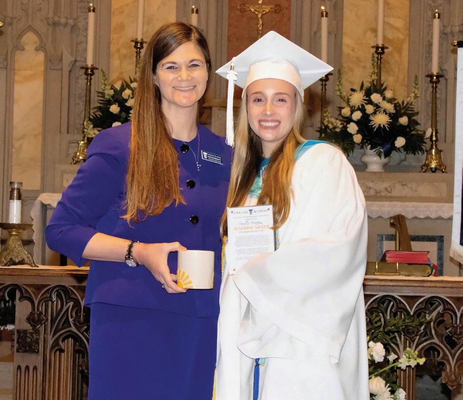and charism with all of those she has served. Her example of servant leadership recently inspired the Academy to rename its service award The Sr. Regina Marie Fronmüller, OSU Service Award, which is presented to graduates who have completed 100 or more hours of service each year of high school. Inaugural recipients of this award from the Skip Class of 2025 are Maggie Dunn, Eva Martinez, and Alexandra Sanchez.