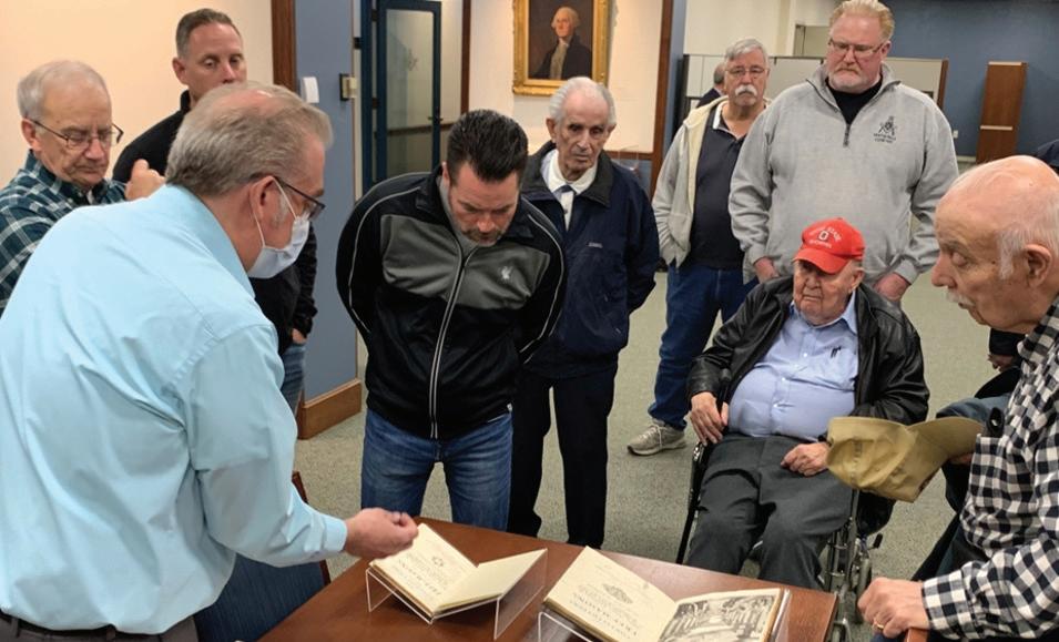 Library & Archives Director Jeff Croteau chats with a group of visiting Masons.