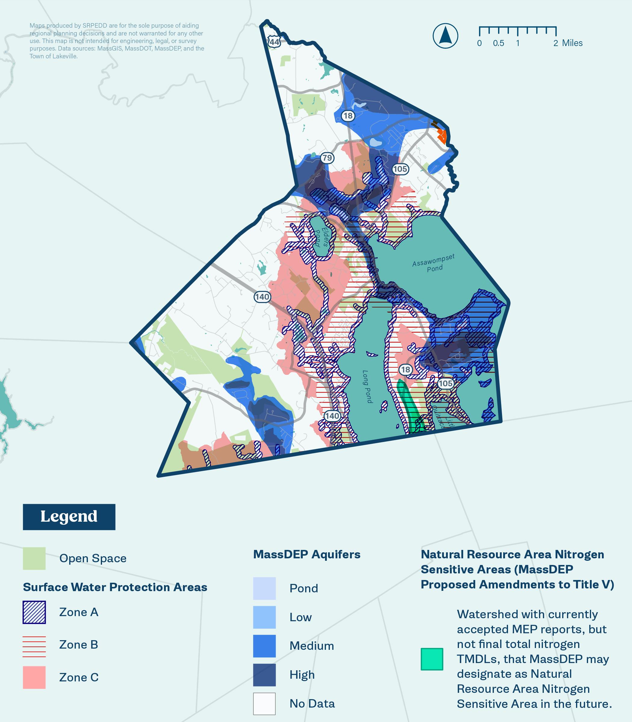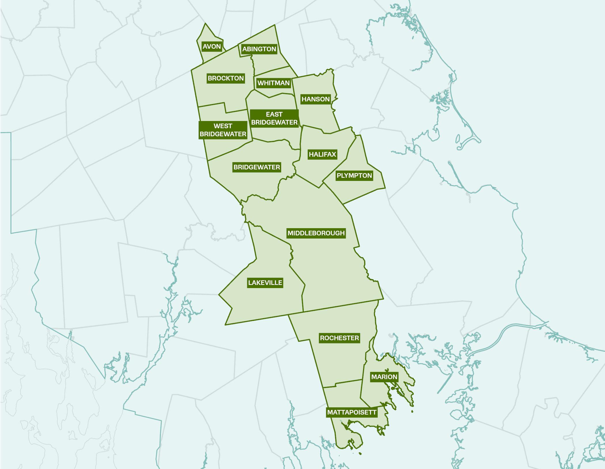The Town of Lakeville, incorporated in 1853, is a small, rural community of just over 11,500 residents. Lakeville is located on the southwestern edge of Plymouth County, nestled between Taunton, Middleborough, Berkley, Freetown, and Rochester, and is roughly 38 miles south of Boston. The town’s scenic 36.1 square miles contain many lakes (or ponds), as its namesake suggests, as well as wetlands, habitat areas, aquifers, and a mix of rural/suburban neighborhoods. The many ponds, rivers, and streams in town also serve as a source of drinking water.