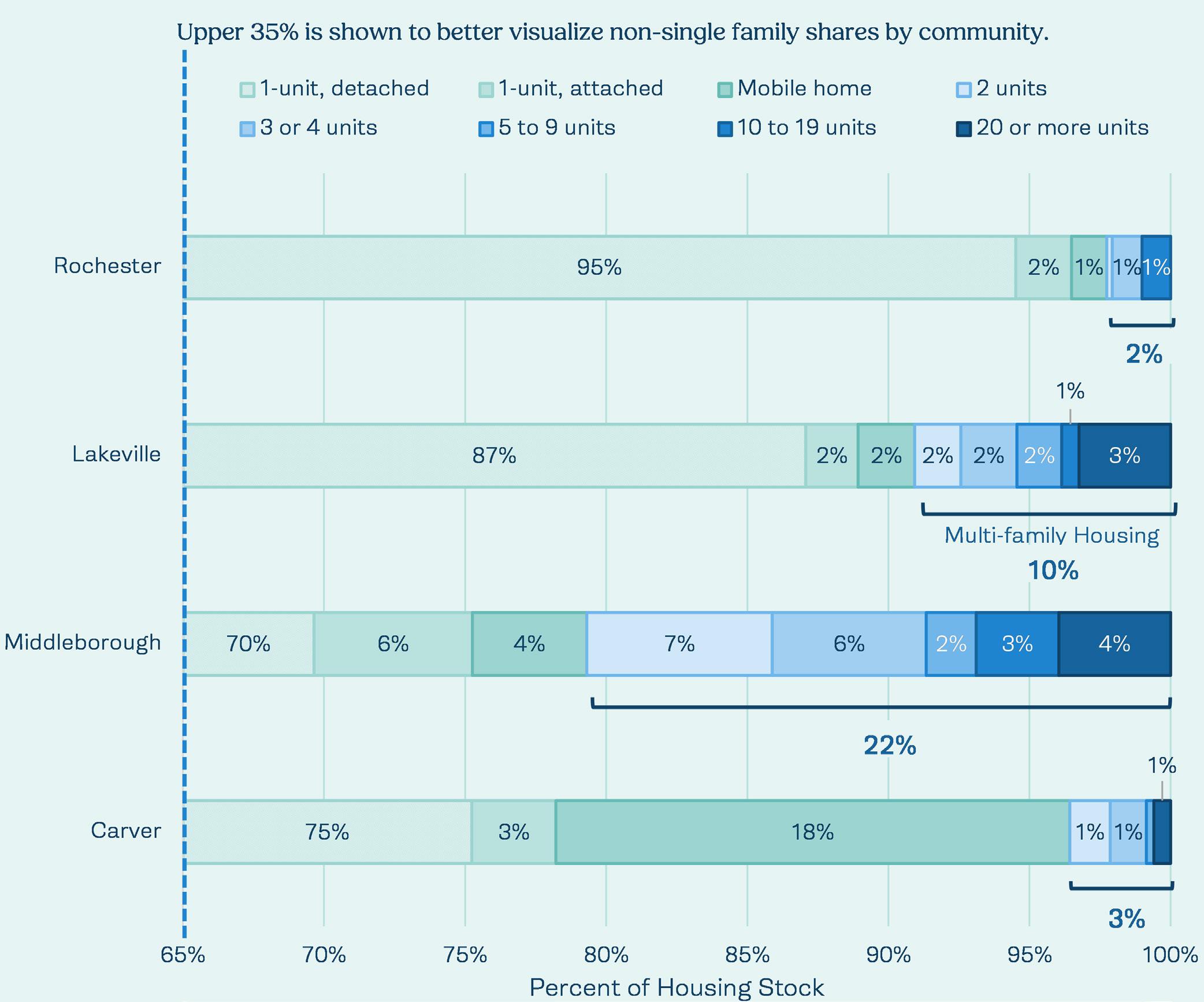 In 2022, Lakeville partnered with the Southeastern Regional Planning and Economic Development District (SRPEDD) to update their Housing Production Plan, last updated in 2018. A Housing Production Plan (HPP), as defined by 760 CMR 56, is a document that shall contain at a minimum the following elements, covering a period of five years: