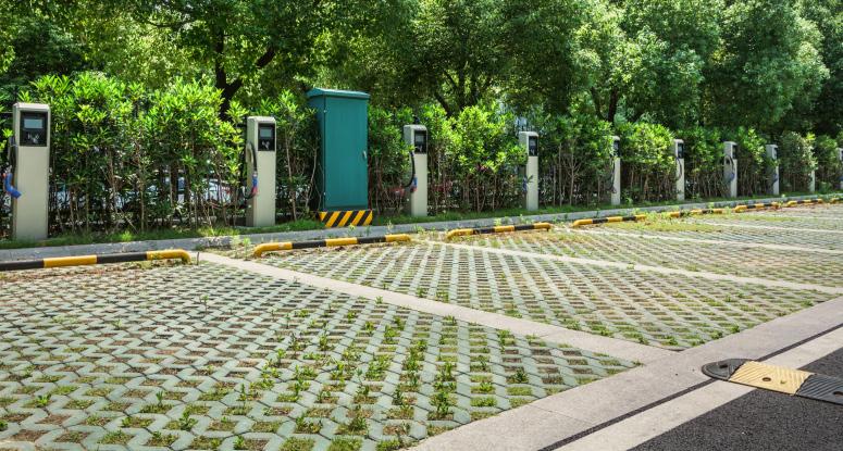 Permeable parking spots with EV chargers