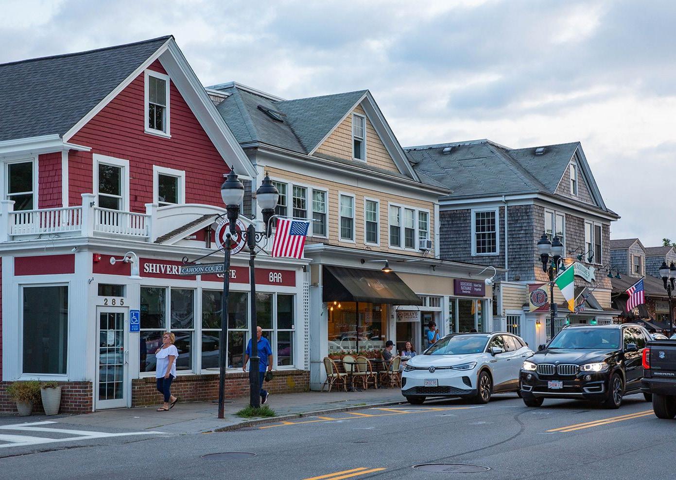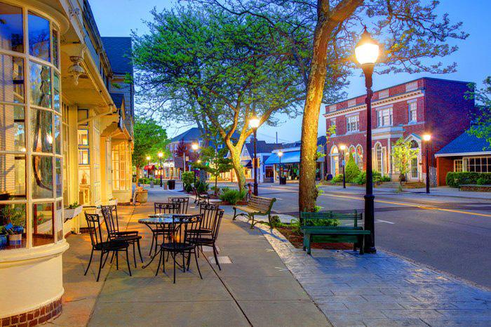 Falmouth, MA’s downtown was the most popular precedent option on the Visual Preference Survey boards shown to Somerset residents during the Slade’s Ferry Traveling Workshops. Residents emphasized their approval of its human scale, wide sidewalks, outdoor seating, lighting, and large windows. Each of those aspects blend together to create a distinctly “New England” feel that they’d like represented in Slade’s Ferry.