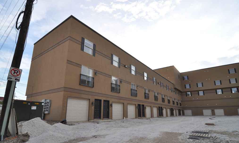 “Wrap” parking garages with active uses along primary streets. Make sure to take height of attached/nearby structures into consideration in order to ensure cohesion with existing neighborhood aesthetics.