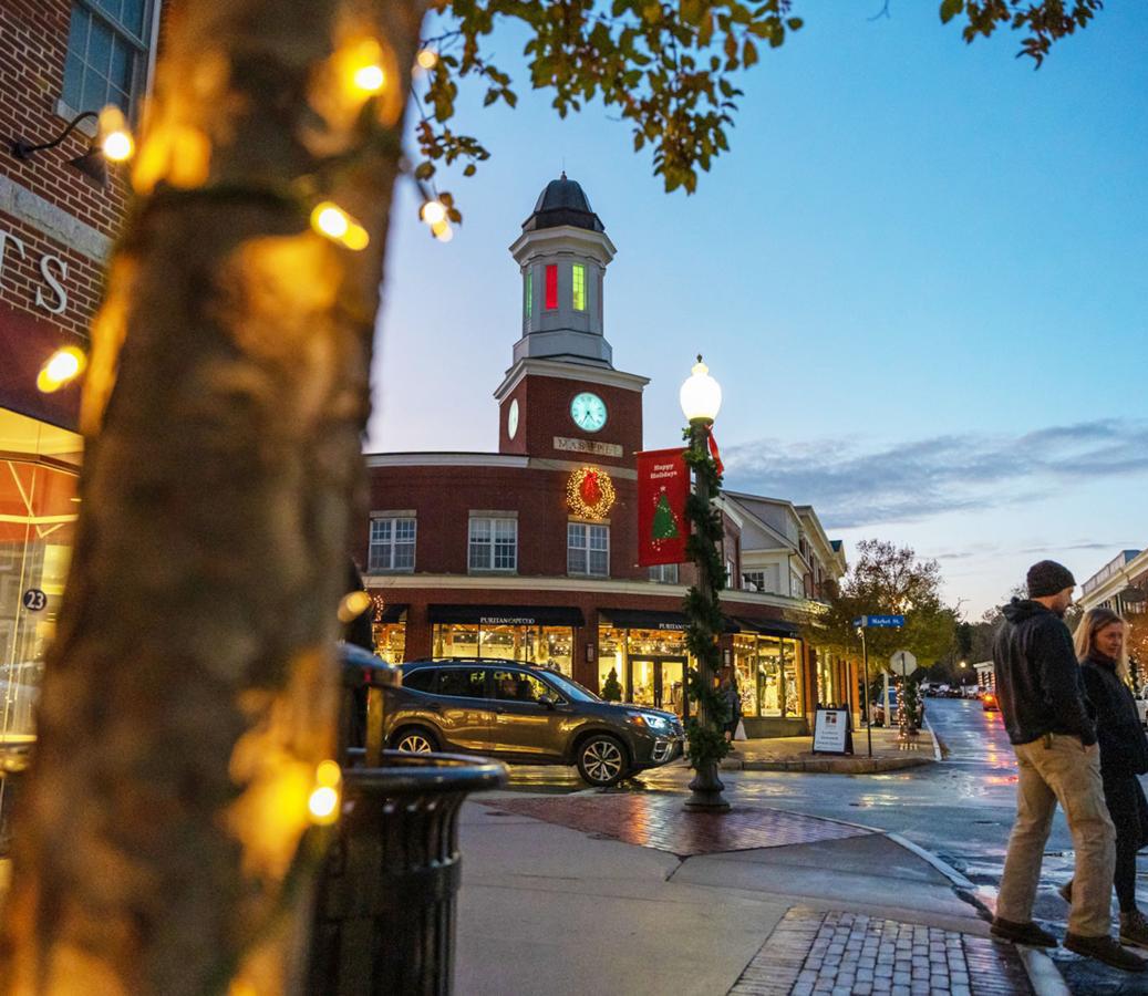 a) Breaking up massing heights, roof types, floor-to-floor heights, and setbacks. This can help what would otherwise read as a monolithic structure read as integrated into the historic fabric of Town.