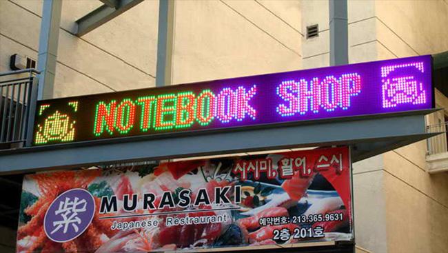 • Any sign which incorporates any flashing, moving, intermittent, animated or rotating lighting except those displaying only time and temperature on separate displays.