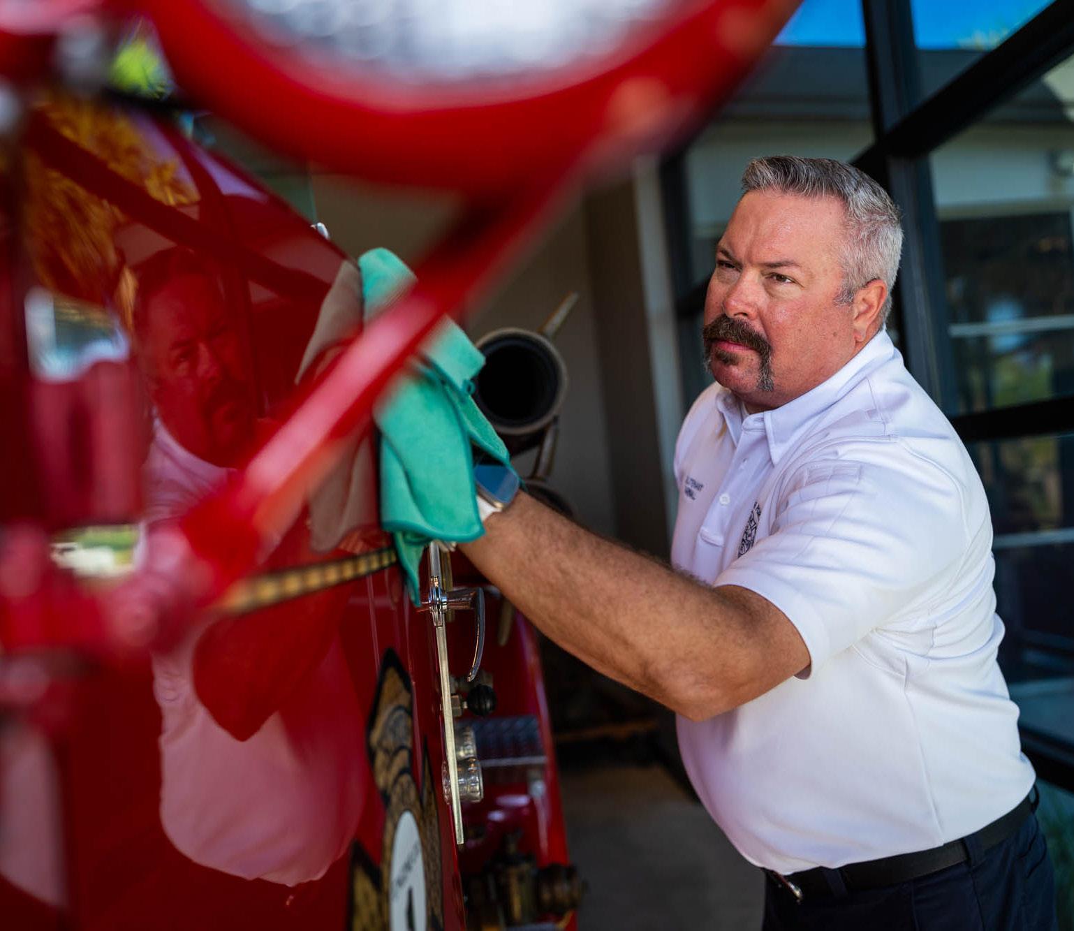 “EVERY DEPARTMENT SHOULD HAVE AN ANTIQUE FIRE TRUCK,” says Lieutenant Richard Yarnall. “All the surrounding departments–Charlotte, Englewood, Venice, Sarasota–they all have antique trucks and we would see them out and about. So we had a drive toward finding one that was feasible to get.” Yarnall has been a lieutenant with the North Port Fire Rescue Department for six years, but he’s been there for eighteen years in total. About a year after joining the department, he (with the help of some others) formed the North Port Fire Rescue District’s Honor Guard. This unit is made up of firefighters who volunteer to represent their department at significant public occasions like parades, civic events and official gatherings. They also perform ceremonial honors for firefighters who have died in the line of duty or after retirement. He and other members of the honor guard were interested in finding an antique fire truck for the North Port department. They found it in an unlikely place.