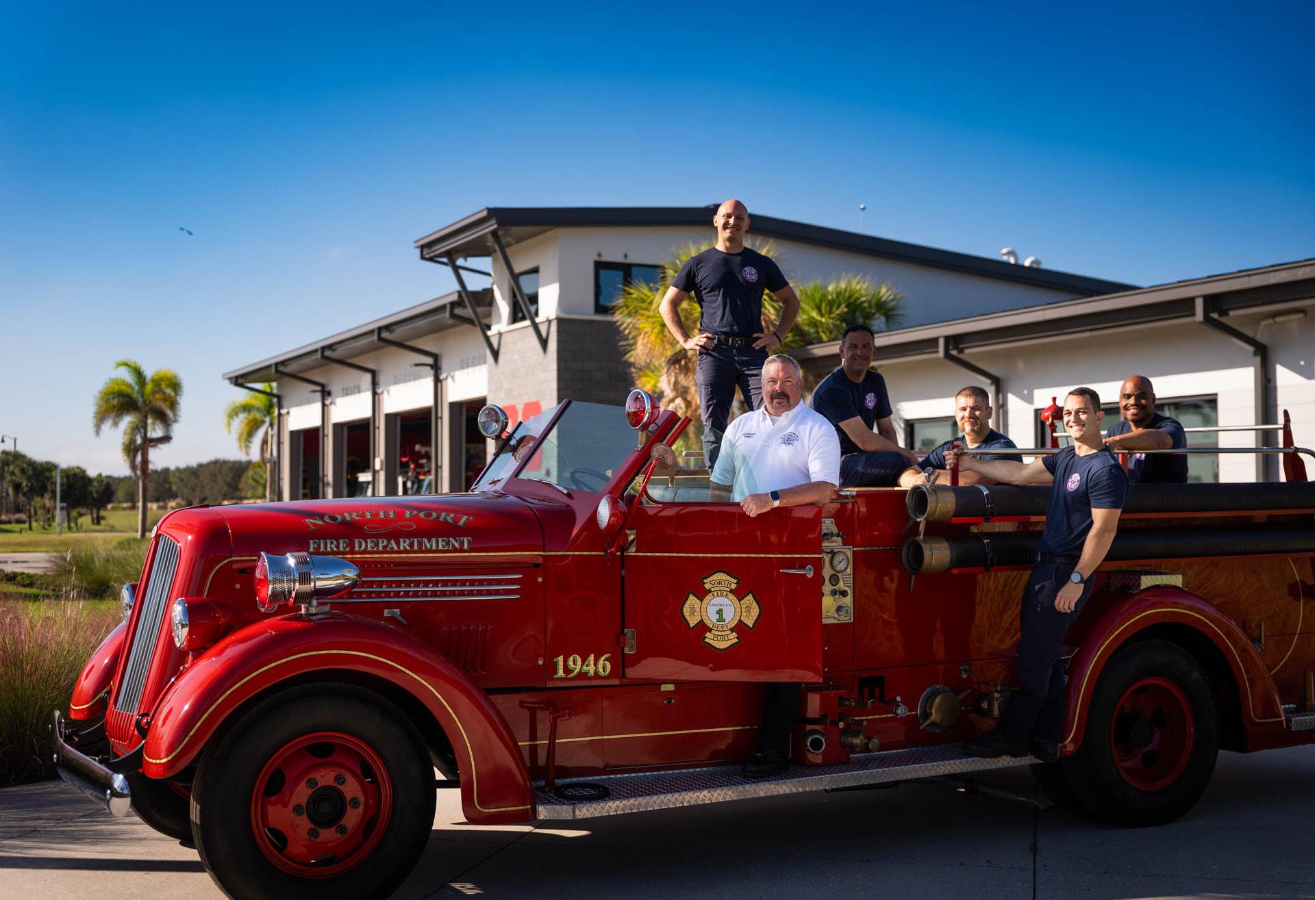 THIS PAGE Once in a local resident’s yard, the 1946 Seagrave has been restored to its former glory. Lt. Richard Yarnall makes sure the truck is picture perfect for community events. North Port Fire Station 86, 19955 Preto Blvd. Venice.