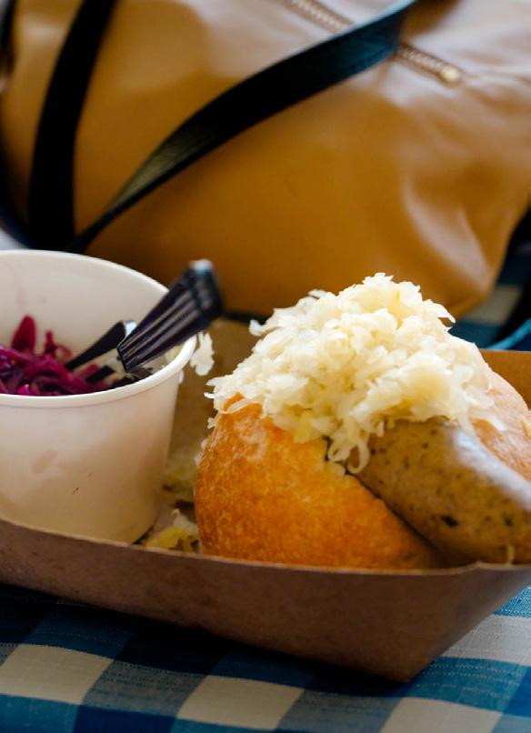 THERE’S A CERTAIN MAGIC TO ARRIVING AT THE FRESH HARVEST FARMERS MARKET IN DOWNTOWN WELLEN PARK IN THE EARLY HOURS OF THE DAY. On Sunday mornings, the air hums with energy as vendors bustle around setting up their tents and displaying their wares. Heirloom tomatoes, juicy berries and colorful bell peppers glow like jewels in the morning sun and jars of local honey cast a warm amber glow. The delicate scent of fresh herbs mingles in the air with the zesty sweetness of citrus and the enticing aroma of savory breakfast empanadas. Neighbors pause to exchange greetings as they fill up their reusable tote bags with grocery items for the week. It’s more than a shopping trip: it’s a ritual of connection where the rhythm of the seasons comes alive. A stroll through a farmers market offers a snapshot of a region’s culinary spirit. Local jams, sauces, breads, cheeses and craft beverages are often made with local ingredients and shaped by the area’s culture.