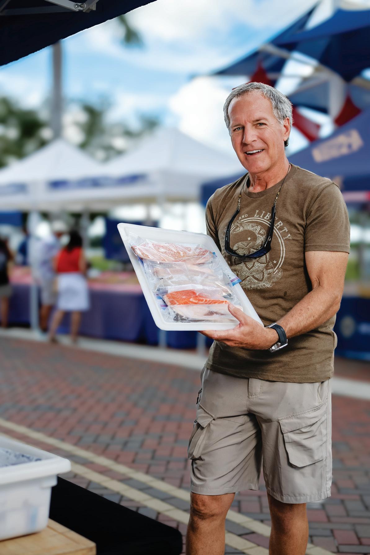BELOW: Pat Chevron (right), business partner of Florida’s Freshest Fish Company at the Farmers Market. floridasfreshestfish.com.