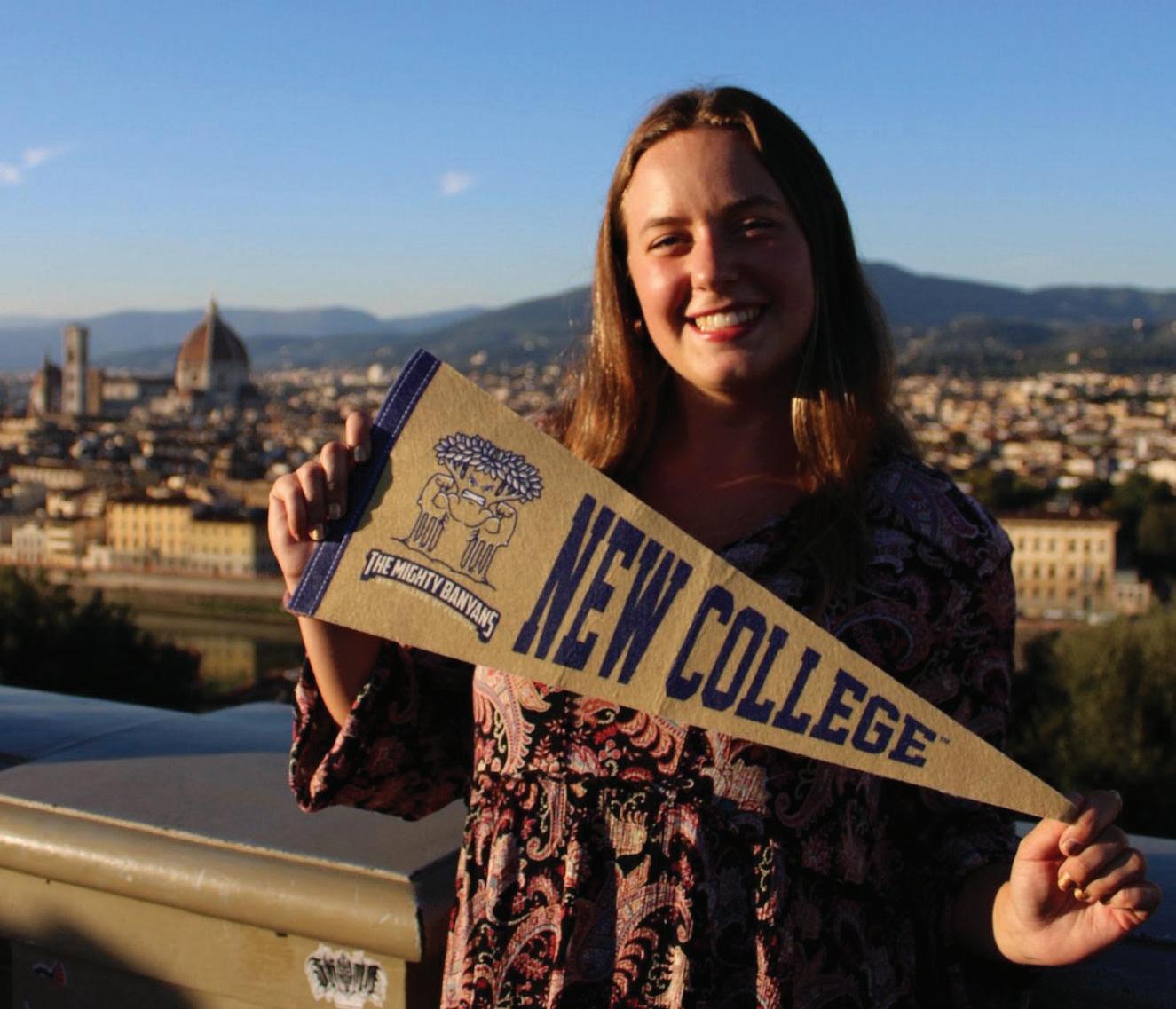 OUR MISSION IS TO INSPIRE GLOBALLY MINDED, CULTURALLY AWARE LEADERS THROUGH HANDS-ON LEARNING AND REALWORLD EXPERIENCES. A SHINING EXAMPLE IS STUDENT ANNA LAZZARA, WHO WAS ELECTED STUDENT BODY PRESIDENT AT THE FSU FLORENCE CENTER FOR FALL 2025. AS THE ONLY NEW COLLEGE STUDENT STUDYING IN FLORENCE, ANNA’S LEADERSHIP ABROAD REFLECTS THE CONFIDENCE, CURIOSITY, AND CIVIC SPIRIT FOSTERED AT NEW COLLEGE. HER SUCCESS AND THAT OF MANY OTHERS — IS MADE POSSIBLE THROUGH DONOR SUPPORT. EVERY CONTRIBUTION HELPS STUDENTS TRAVEL, STUDY, AND ENGAGE WITH DIVERSE CULTURES THAT SHAPE THEIR ACADEMIC WORK AND PERSONAL GROWTH. THESE EXPERIENCES OPEN MINDS, BUILD EMPATHY, AND PREPARE STUDENTS TO BECOME LEADERS WHO UNDERSTAND THE WORLD AND THEIR ROLE IN IT. WHEN YOU GIVE TO NEW COLLEGE, YOU’RE NOT JUST FUNDING EDUCATION YOU’RE TRANSFORMING LIVES, CREATING OPPORTUNITIES, AND INSPIRING THE NEXT GENERATION OF CHANGEMAKERS.