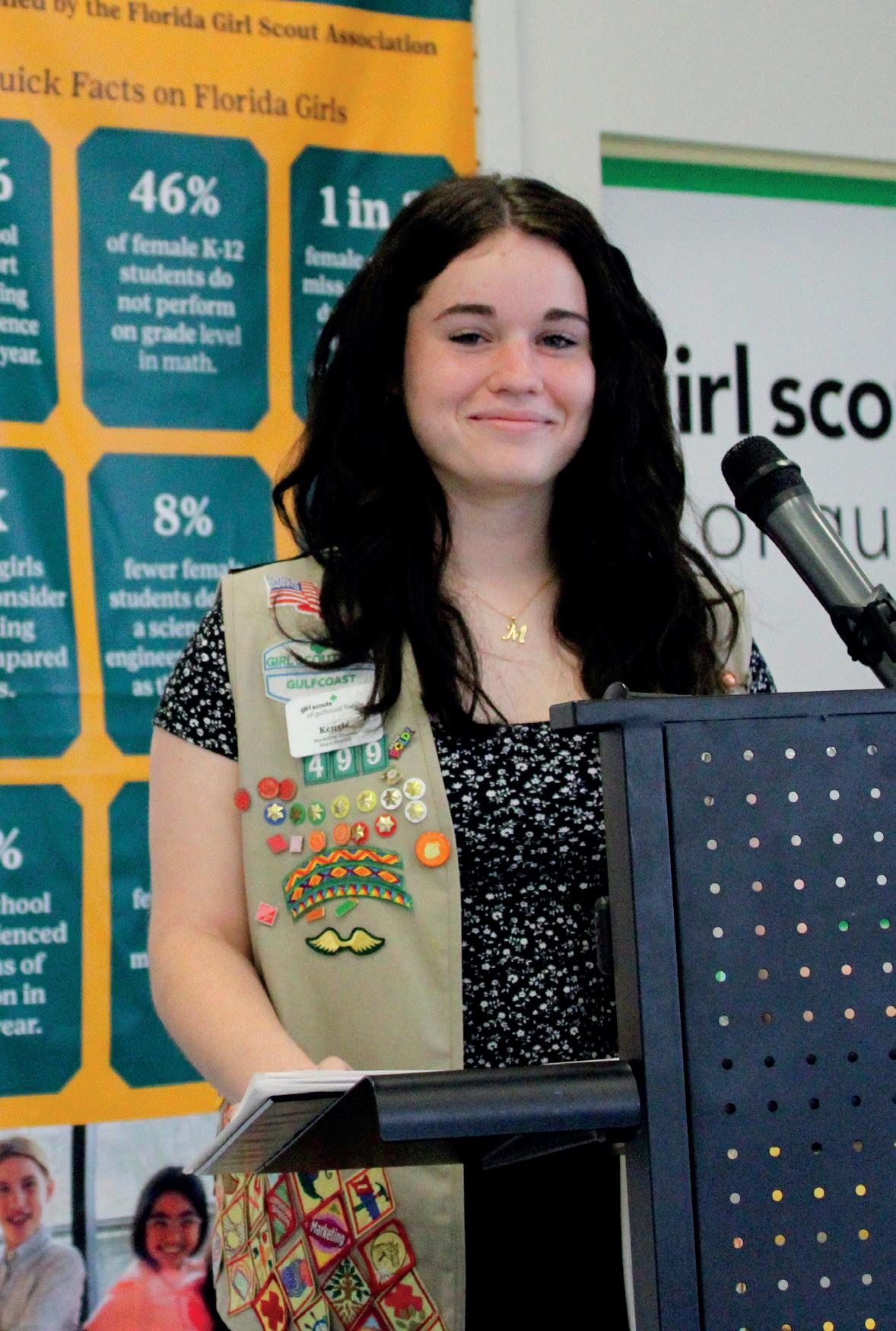 help girls thrive. To better support members’ mental health, we partnered with HCA Florida Sarasota Doctors Hospital to deliver wellness programming, and collaborated with NAMI Sarasota and Manatee Counties and Children’s World for the 2024 Giving Challenge. Our goal was to empower girls like Mackenzie with tools for mental health awareness, self-care and resilience. “Seeing organizations like NAMI and Girl Scouts come together really gave me confidence that girls would grow up with these resources accessible to learn about mental health and manage everyday life,” Mackenzie says.