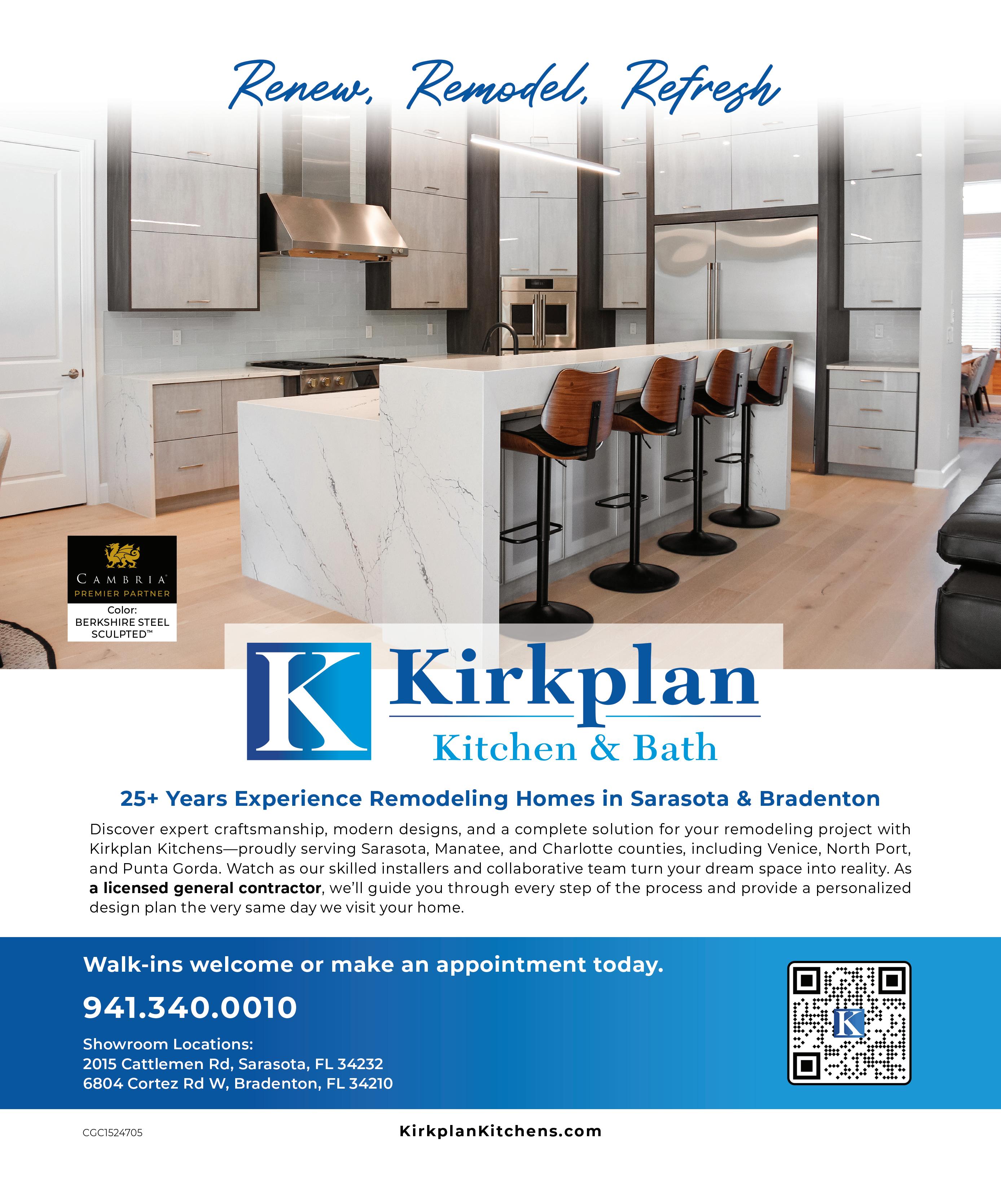 “It’s about taking that vision wherever a client comes from and having the knowledge and skill to bring it to life in a way that’s also going to be durable and hold up. So it doesn’t just hit the aesthetic marks, but it also hits the benchmarks of longevity and high quality.” Nautilus Homes, 7126 Beneva Rd. #201, Sarasota, 941-366-3650, nautilus-homes.com.