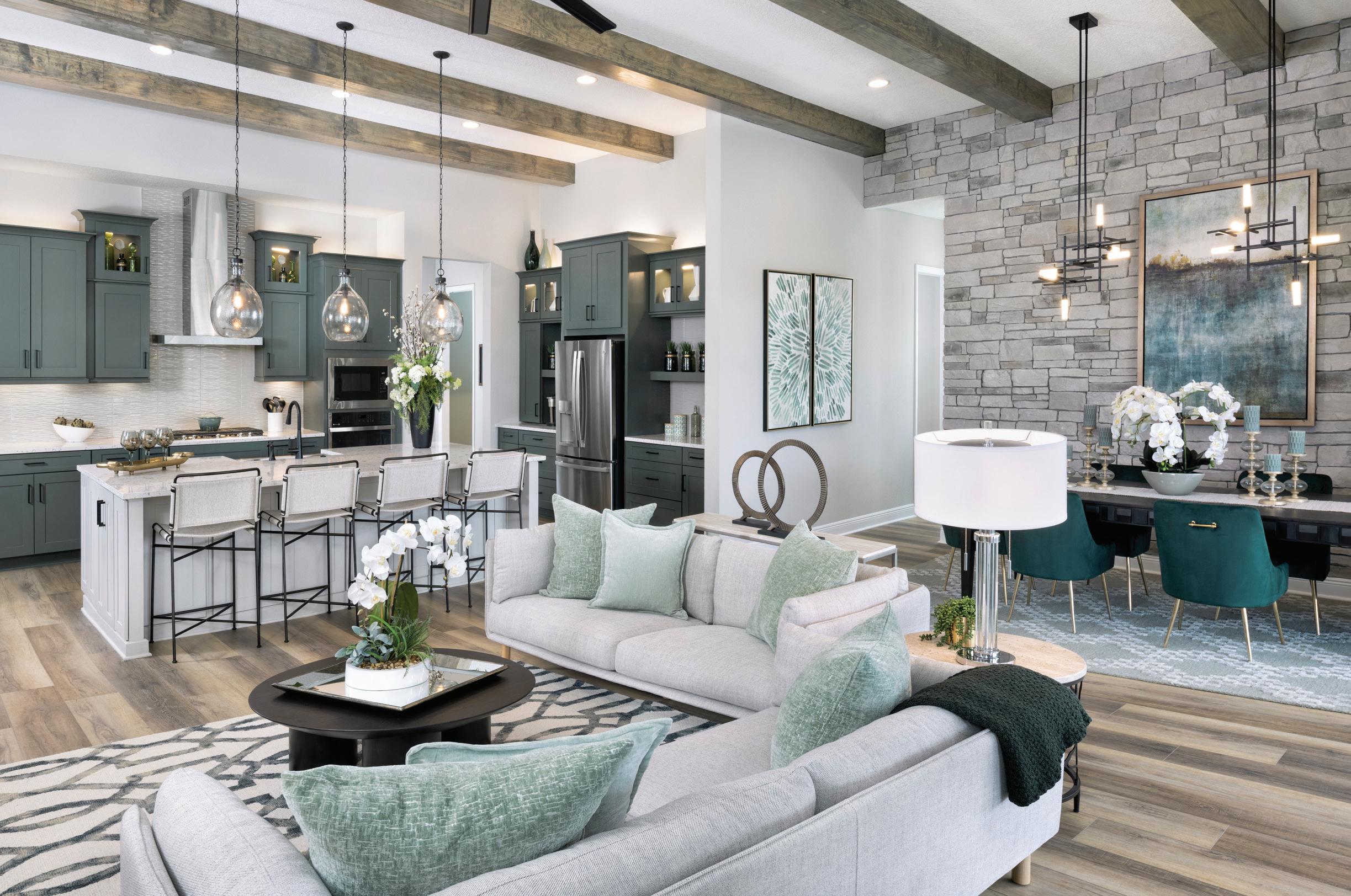 ONE OF THE REASONS HOMES BY WESTBAY IS ABLE TO deliver custom-quality homes on a production timeline and budget is the versatility built into their home designs. In every community, they offer a variety of floor plans tailored to different lot sizes, giving buyers the flexibility to choose a layout that fits their lifestyle. Many of these plans also include structural options—so a four-bedroom, three-bathroom home might easily become a three-bedroom with a dedicated home office instead. What’s more, WestBay continually updates and refines its offerings. Longstanding favorites like Homes by WestBay’s Key Largo and Biscayne floorplans have evolved over the years in response to changing homeowner needs, with features like reimagined laundry rooms or more functional work-from-home spaces reflecting today’s way of living. Beyond offering a wide variety of floorplans, Homes by WestBay also distinguishes itself with an impressive range of design options that allow buyers to tailor their home to fit their personal style. “When I started in this industry twenty-five years ago, the kind of design studio experience we have today simply didn’t exist in our area,” says Crescini. “Back then, it was challenging for builders to offer homebuyers a variety of choices, and even harder to communicate those selections accurately to trade partners. That often meant, products weren’t installed as expected, and homeowners ended up with a space that didn’t fully reflect their vision. Many had to take on home improvement projects after moving in—just to get the home they truly wanted. Simply because the builder couldn’t provide the investment options buyer desired.”