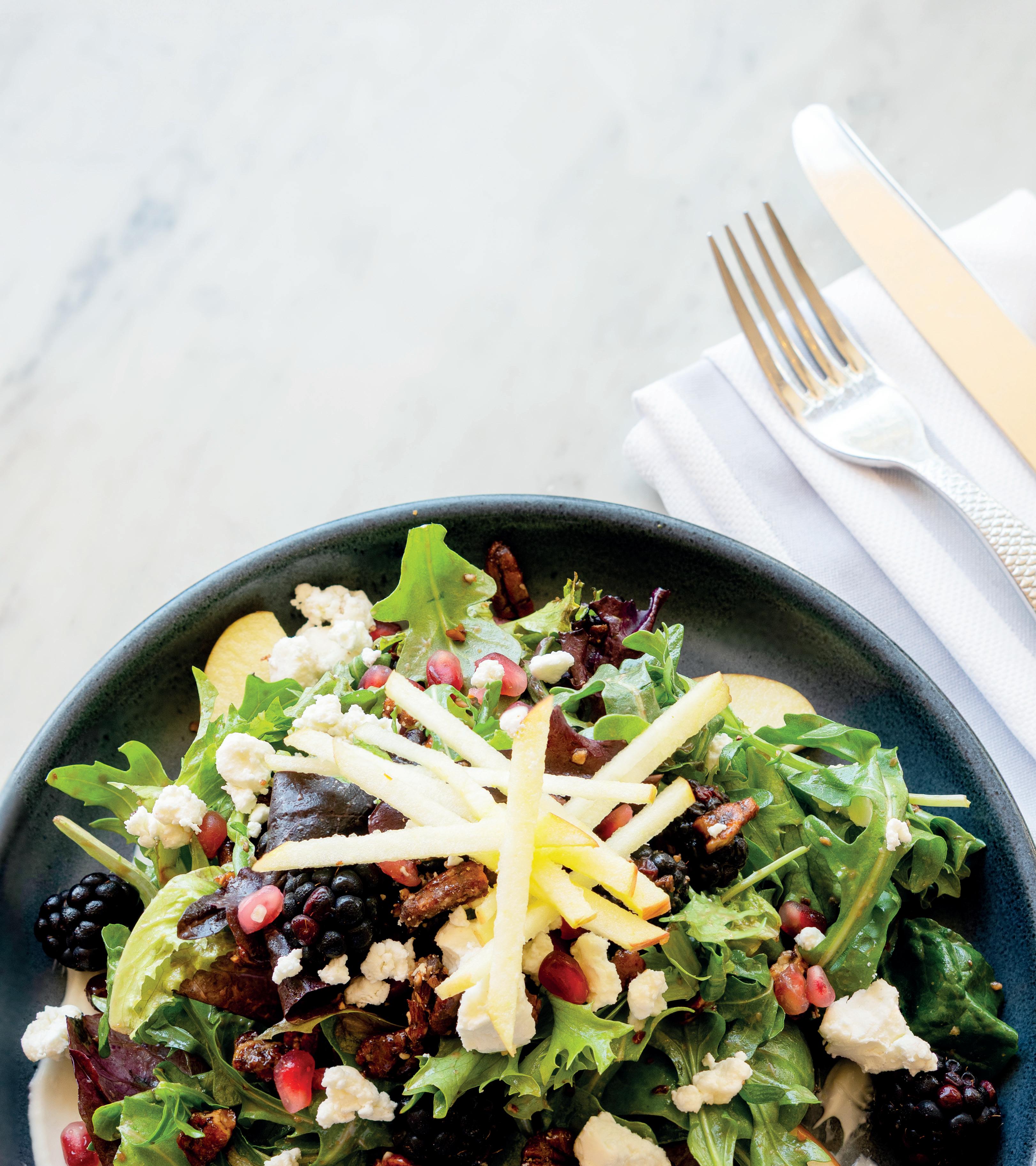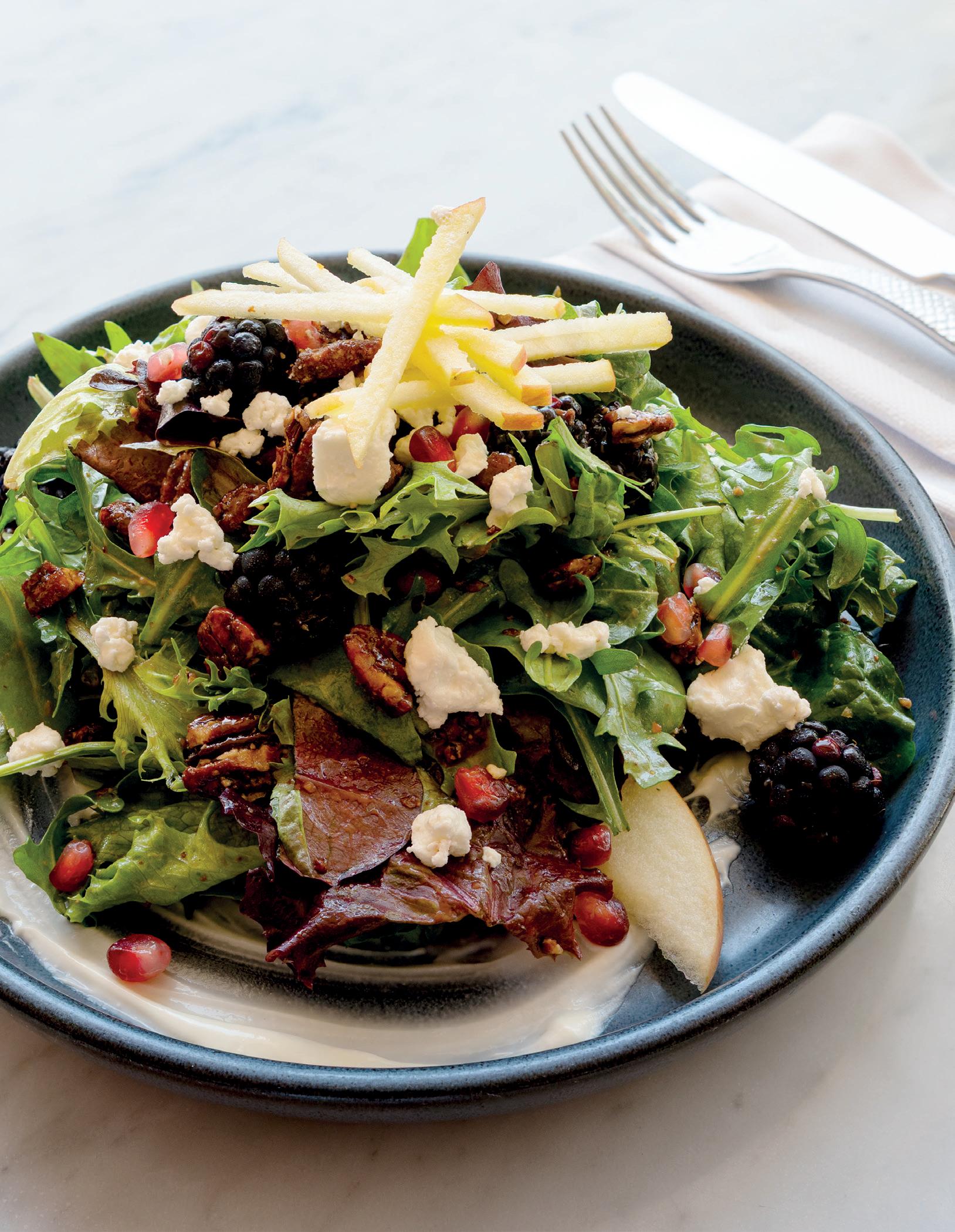 This page: Blackberry Pecan Salad at Jack Dusty, photography by Jennifer Villagomez.