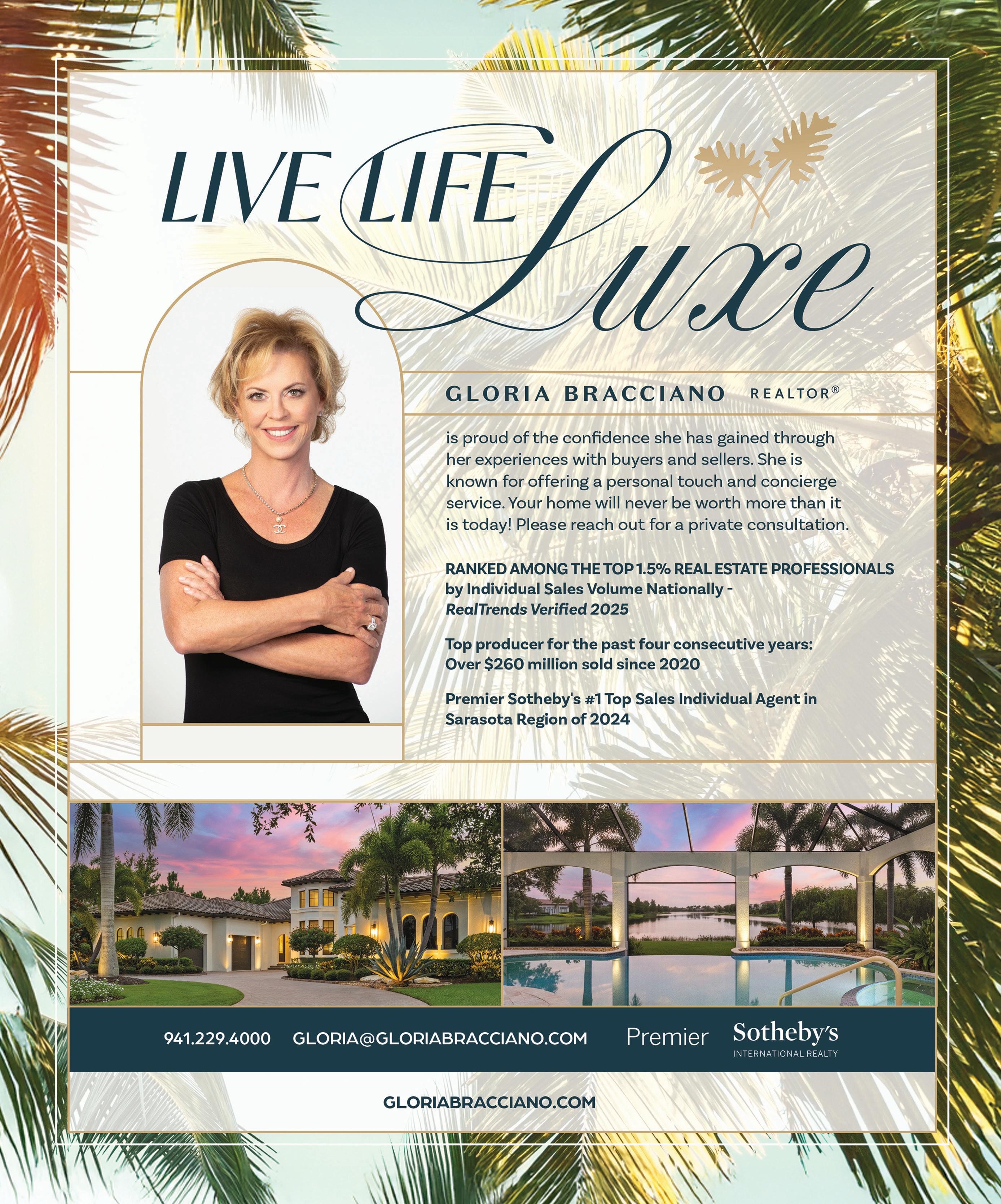 SUBSCRIBE TO THE PRINT AND DIGITAL EDITION Join our readers in the pleasurable experience of receiving SRQ Magazine in your mailbox every month during season and bimonthly during the summer. To reserve your subscription, provide your information and payment online. You can set up multiple addresses, renewals and special instructions directly through your online account. When you subscribe online, your first print issue will arrive in your mailbox in 6-10 weeks. Subscribe online at SRQMAG.COM/SUBSCRIBE. Contact us via email at subscribe@srqme.com