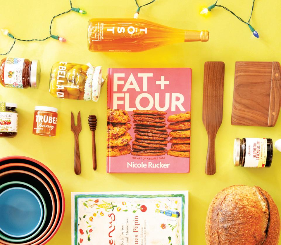 This page: Kate Traugott at The Farm, photography by Wes Roberts; Branzino with lobster, spiraled zucchini, almond aillade and basil, photography by Wes Roberts; and, cheerful holiday gifts, photography by Wes Roberts. Cover: Holiday gift guide, photography by Wes Roberts. Giving Coast Cover: Illustration by Abby Jensen, an illustrator and designer from Bolingbrook, IL, who is completing her senior year at Ringling College of Art and Design.
