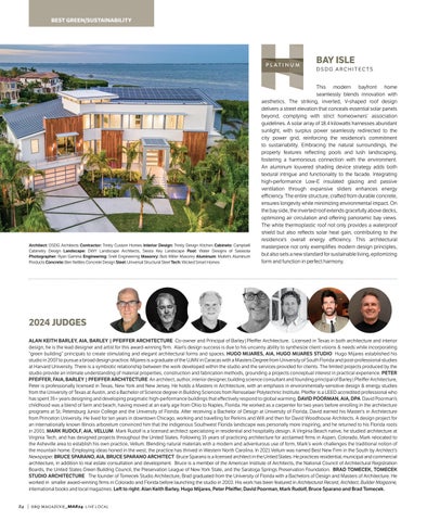 Cover: The Blackburn Bay Platinum Award-Winning Home of the Year in the category of Best Overall Home Over $4 Million by Sweet Sparkman, photography by Ryan Gamma. Previous page: Gulf Gardens Platinum Home of the Year in the category of Best Renovation/Remodel by Sweet Sparkman, photo by Steve Cartano and Ryan Gamma. This page: The panzanella salad at Acqua Pazza; Robert Gaglio on his new book Freedom to Wander; and, Peach Fuzz Pantone inspired local goods, photography by Wyatt Kostygan.