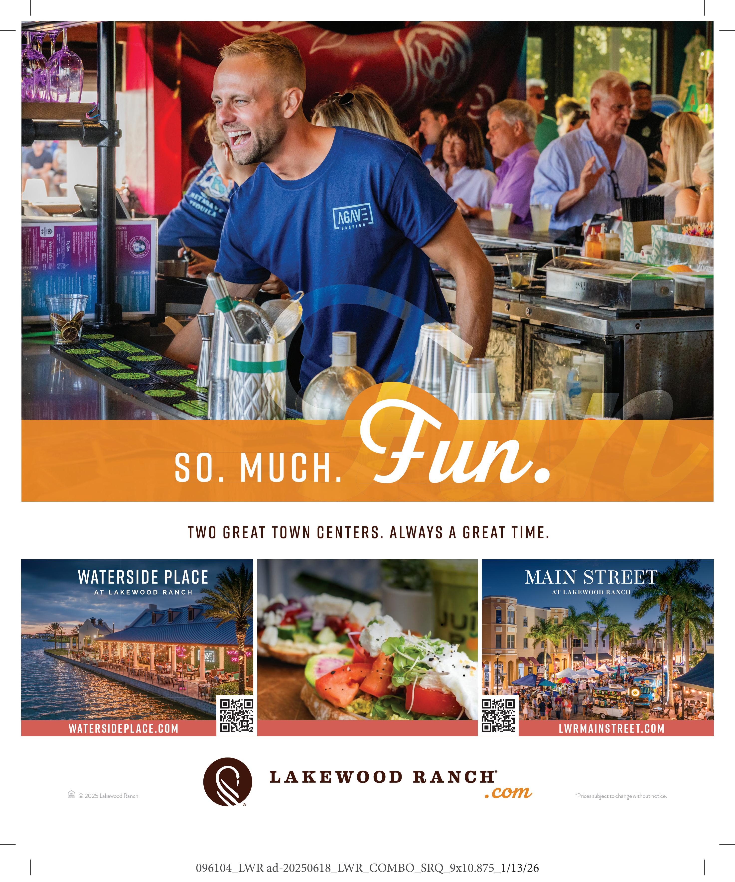 Libby’s, a Sarasota mainstay five years into its Lakewood Ranch presence, offers comfort without pretense. Brasserie-style, it’s a place to get comfortable and wave to familiar faces. The Santa Fe, piled plentifully high in a tower with tortilla strips like kindling, “features grilled corn cut fresh from the cob, locally sourced tomatoes, ripe avocado, and our signature cilantro lime vinaigrette,” says Executive Chef, Alex Castillo. “We use only the freshest ingredients,” he adds. The result is piquant and vibrant, but for Cajun-heat, add blackened Gulf shrimp. It’s all about local, seasonal produce with minimal fuss and just enough drama to make the experience fun. A salad in Lakewood Ranch evolves with the hour: your post-workout fuel at noon, a brunch companion near the water, that elegant wedge beneath Art Deco coffers, a seafood showcase at a bustling bar, the Southwestern tower for settling in. Same clientele, different appetites, all fulfilled within a few miles. LL