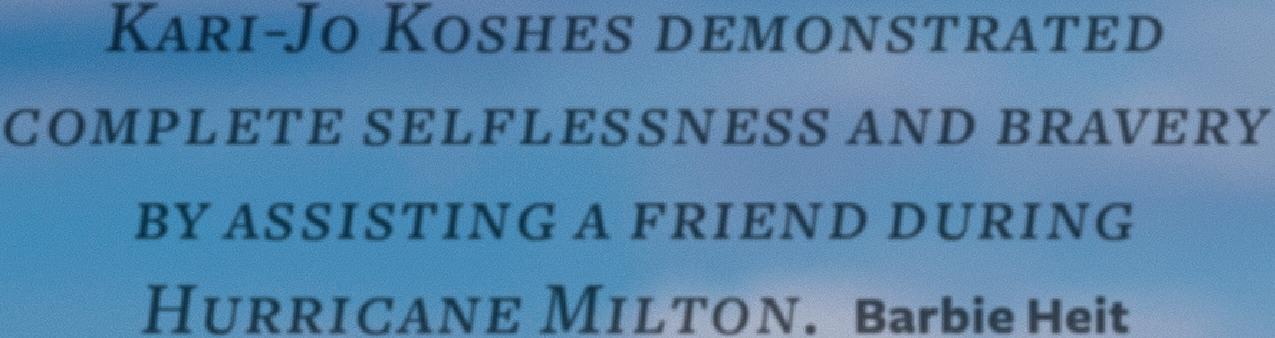 Kari-Jo Koshes demonstrated complete selflessness and bravery during Hurricane Milton.