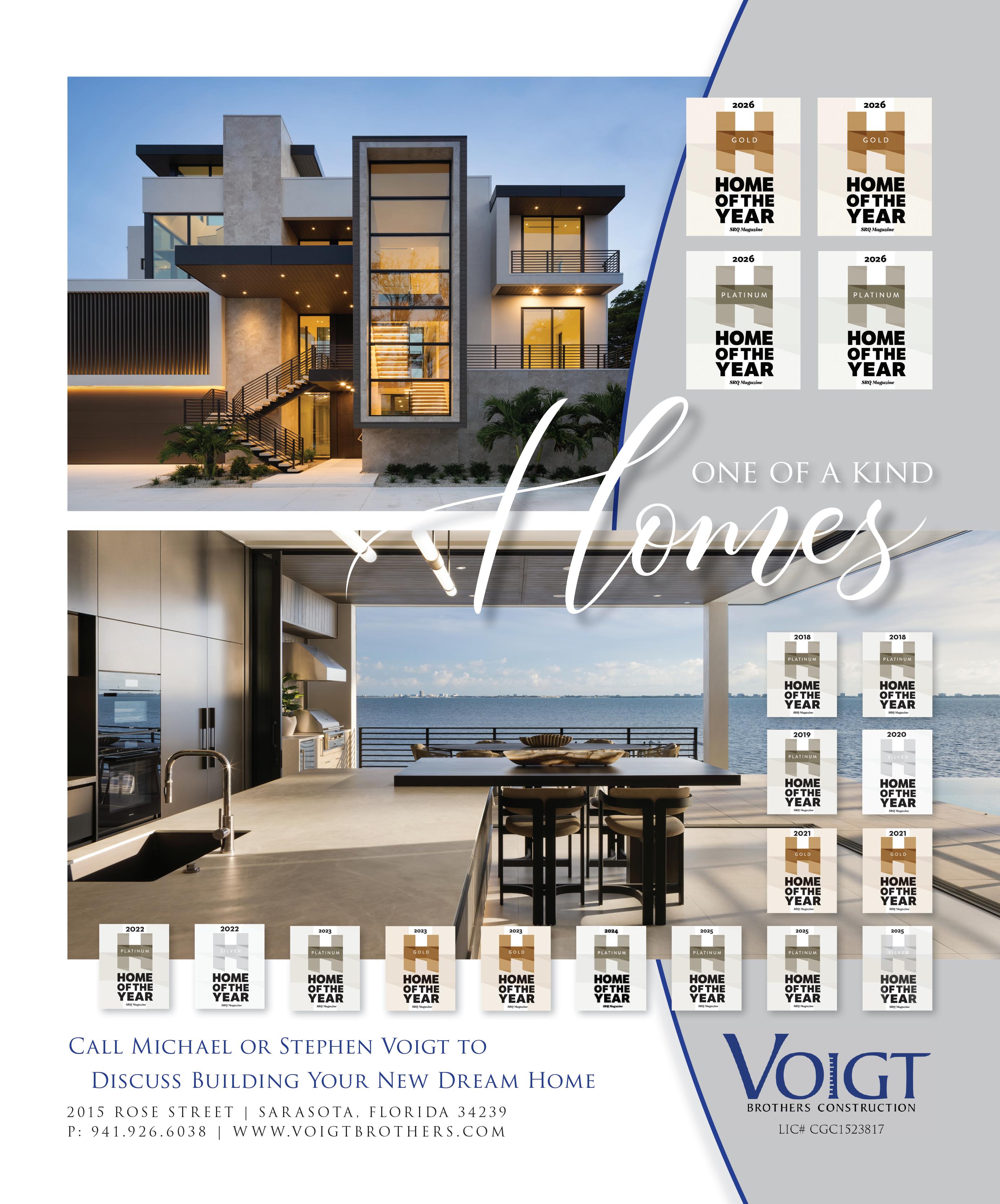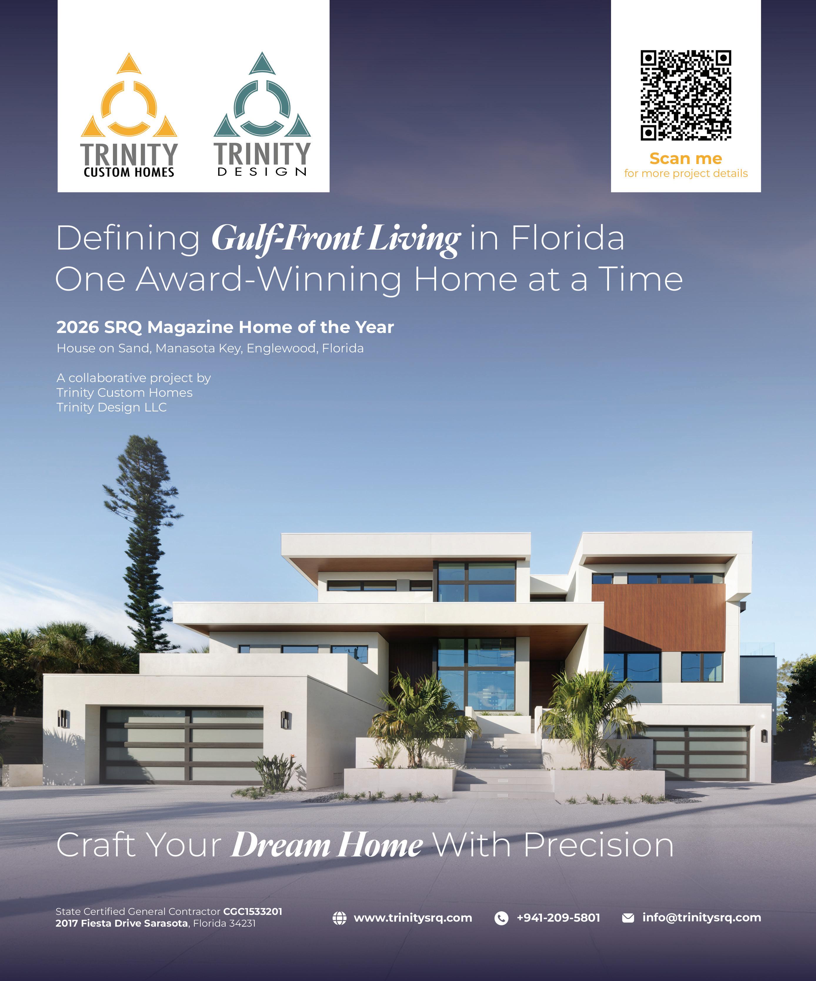 Home remains the most meaningful architectural space we experience throughout our lives. It reflects individuality, togetherness, privacy, stability and inspiration. As we continue to explore the role homes play in our everyday lives, the annual SRQ Magazine Home of the Year Competition invites local architects, builders, interior designers and landscape artists to share fresh perspectives on residential living by submitting their recent projects. Year after year, the competition reimagines the spaces where we live and thrive—expanding the conversation around what a home represents and what it can become through today’s building innovations, renovation approaches and regional influences. From seaside to streetside, inside and out, these award-winning homes celebrate and shape a growing legacy of inspired residential design.