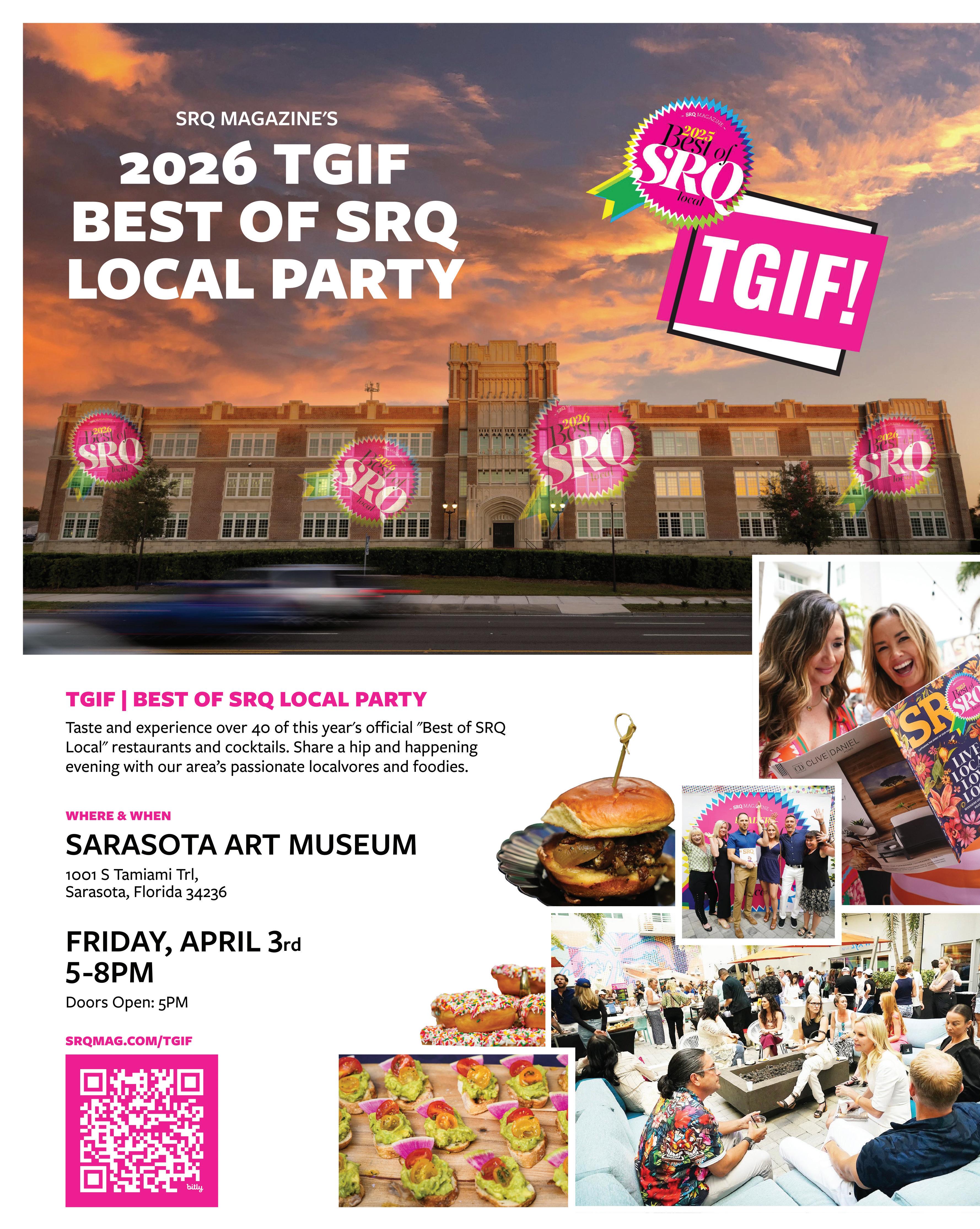 The magazine in your hands offers enormous insight into our community, but the most informed in our community follow our constant coverage of Sarasota and the Bradenton Area in SRQ Daily. The electronic newsletter is a must-read in thousands of inboxes. Check our special editions: Monday Business Edition, Tuesday Foodie Edition, Wednesday Philanthropy Edition, Thursday Family, Education and Sports Edition, Friday Weekend Edition and the much-discussed Saturday Perspectives Edition, featuring a diverse range of opinions from the region’s top pundits and newsmakers. SIGN UP ONLINE AT SRQMAG.COM/SRQDAILY