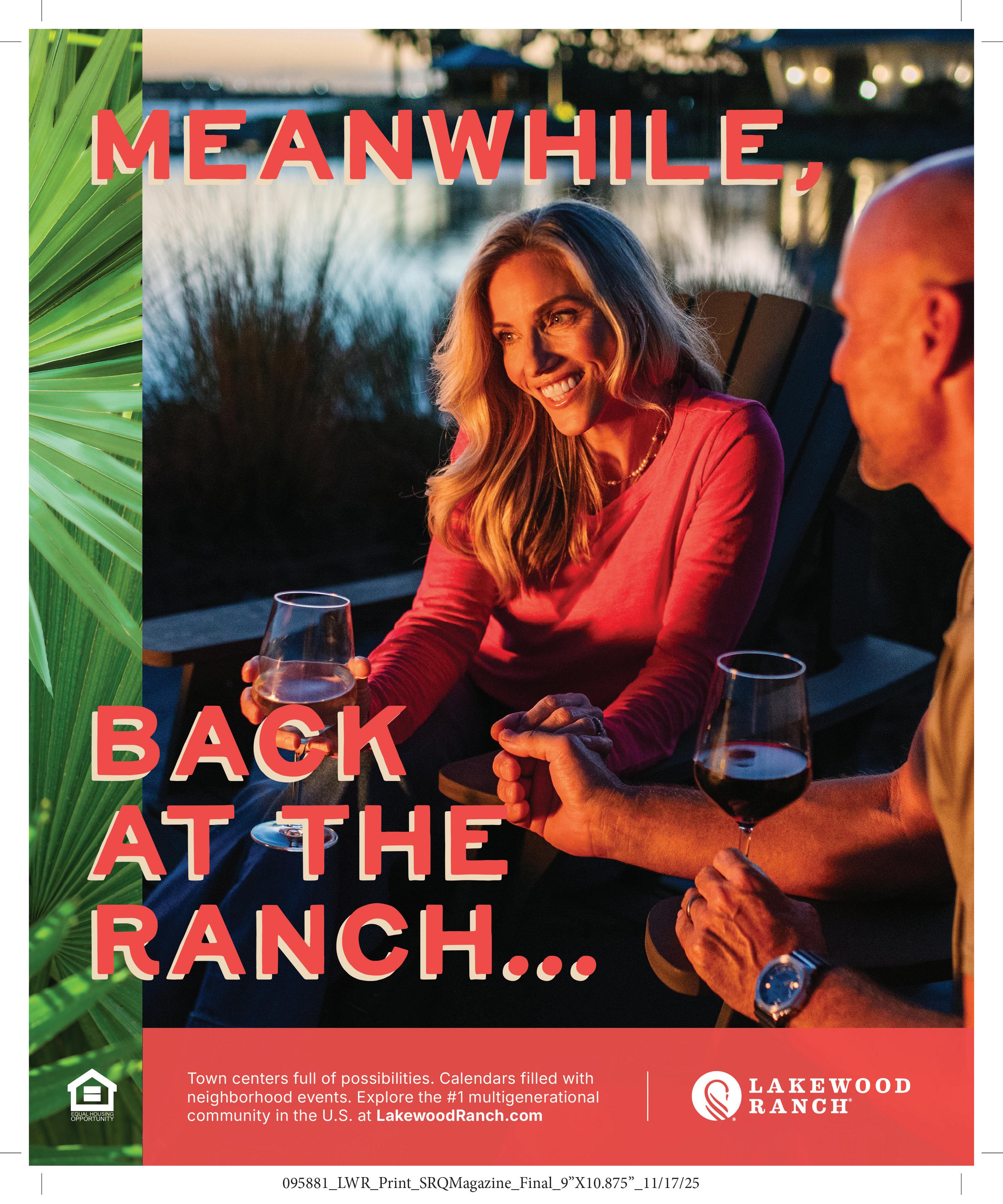 SUBSCRIBE TO THE PRINT AND DIGITAL EDITION Join our readers in the pleasurable experience of receiving SRQ Magazine in your mailbox every month during season and bimonthly during the summer. To reserve your subscription, provide your information and payment online. You can set up multiple addresses, renewals and special instructions directly through your online account. When you subscribe online, your first print issue will arrive in your mailbox in 6-10 weeks. Subscribe online at SRQMAG.COM/SUBSCRIBE. Contact us via email at subscribe@srqme.com