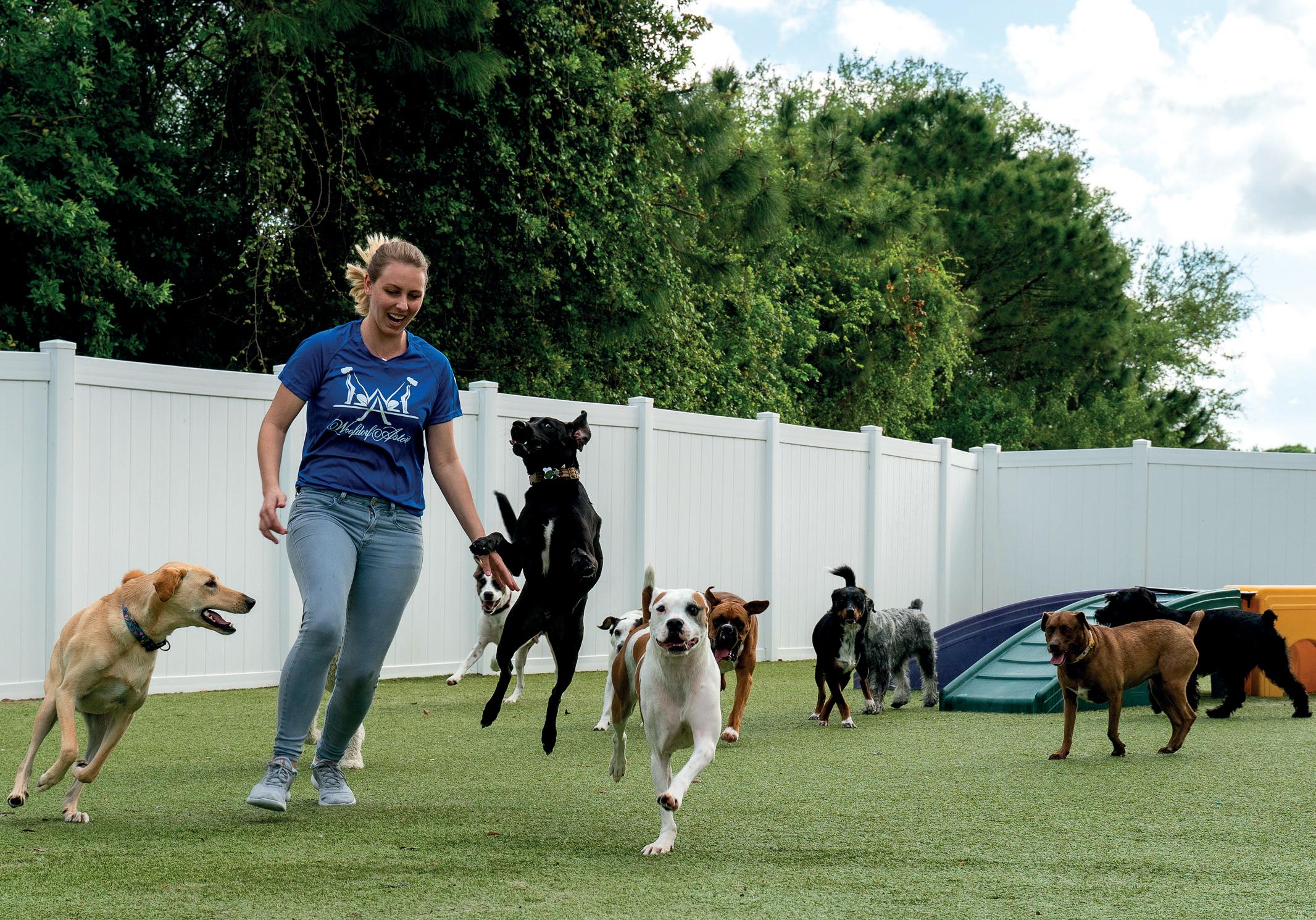 and both indoor and outdoor play areas. General Manager Kelsie Phaneuf notes that the Woofdorf Astoria began as a concept focused on offering a more fun, engaging and enriching experience for dogs than typical boarding facilities. “Our resort operates with a structured environment that prioritizes animal interaction and supervised play,” she says.