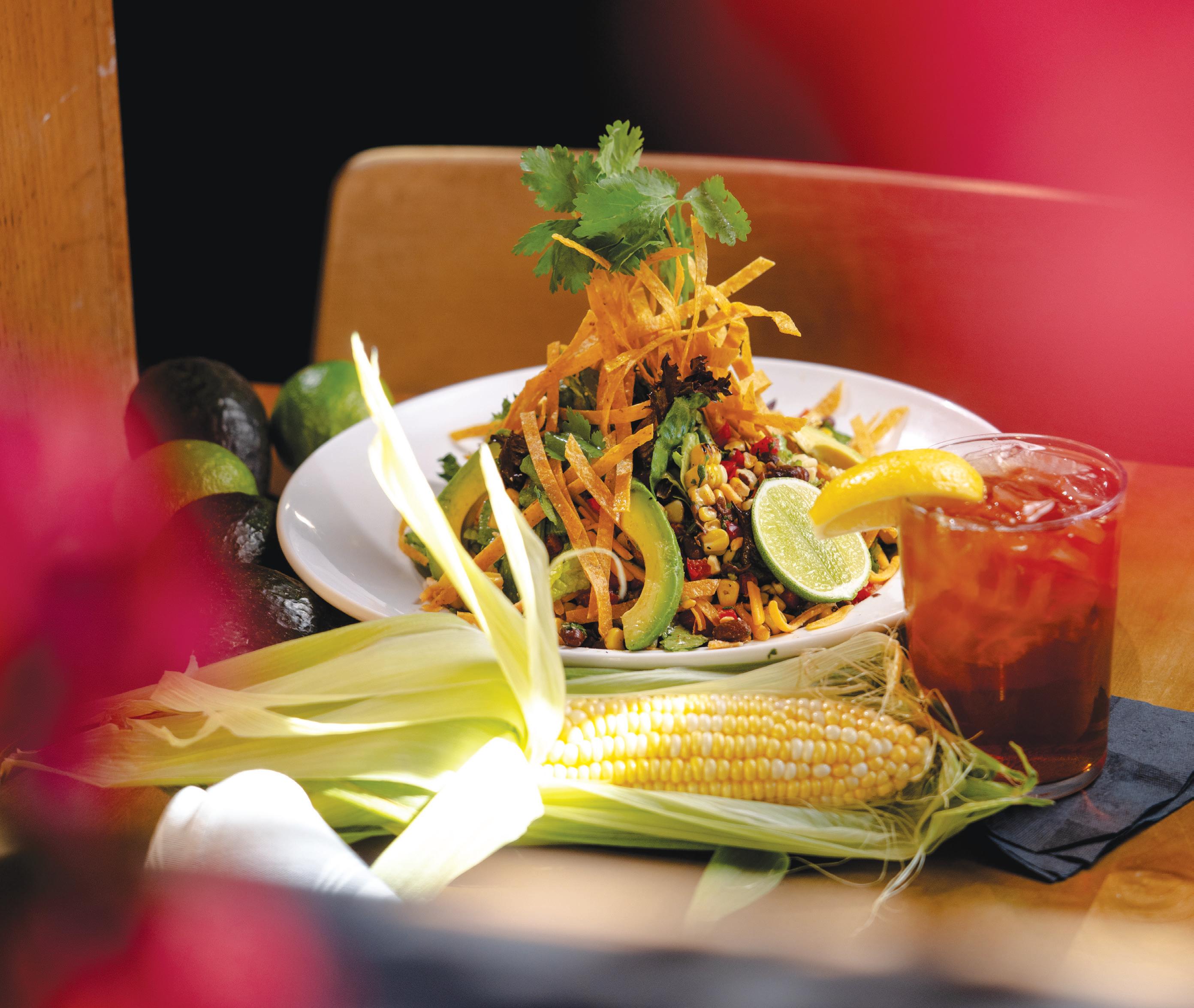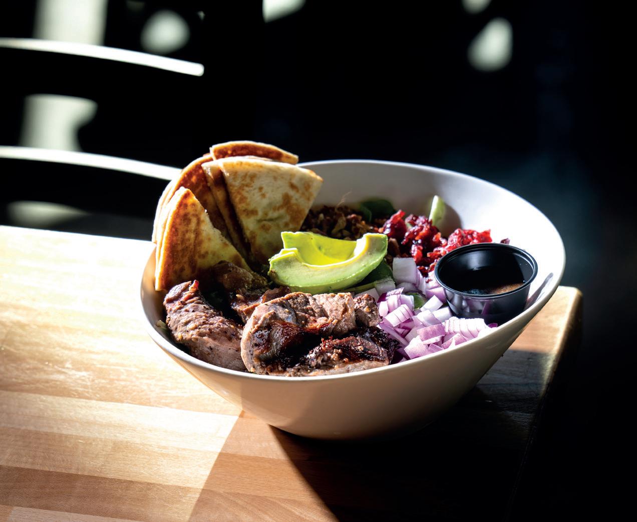 LAKEWOOD RANCH EATS CLEAN, BUT CLEAN LOOKS DIFFERENT DEPENDING ON THE OCCASION OR EVEN THE HOUR. Five restaurants scattered across the neighborhood prove that healthy eating—namely, the salad—has range. At noon inside Flower Child, which specializes in guilt-free meals, regulars call out their orders before hitting the counter. Others, fresh from a workout, weigh chicken against tofu to crown their ancient grains or “forbidden” rice. Two friends split the turkey avocado cobb, its edges spilling organically, to save room for a chocolate chip cashew cookie. Rattan lights dangle from high ceilings as a bright pinkand-turquoise mirror bears the message: “Reflect Goodness.” The Ginger Miso salad delivers a sweet, peppery crunch: carrot zoodles mingle with ribbons of zucchini and cabbage while fresh mint and cilantro cut the tangy Asian dressing flecked with sesame. Start with a vegan and gluten-free base, then add grilled shrimp or salmon if you choose. Fox Restaurant Concepts invented this formula elsewhere, but after nine months in Sarasota, it already feels native.