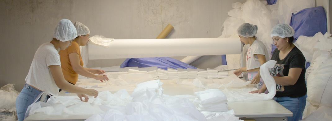 En 2020, como consecuencia de la pandemia, el frente textil se volvió más fuerte. “Son 3.500 camisolines aproximadamente, que entregamos por semana al sector industrial. Venimos trabajando de 7 de la mañana hasta a la 2 de la tarde para llegar a esa cantidad de producción” cuenta Victoria.