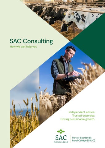 We are part of Scotland’s Rural College (SRUC), and this unique positioning creates connections into research and education, together with wellestablished industry networks and partners. Our connections add value to our collaboration across regional teams, working with more than 100 SAC Consulting technical specialists, creating a range of unique opportunities for our customers as they rise to the challenges of food security, biodiversity and climate change.