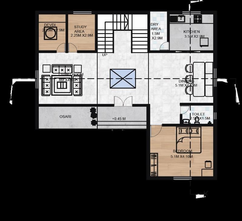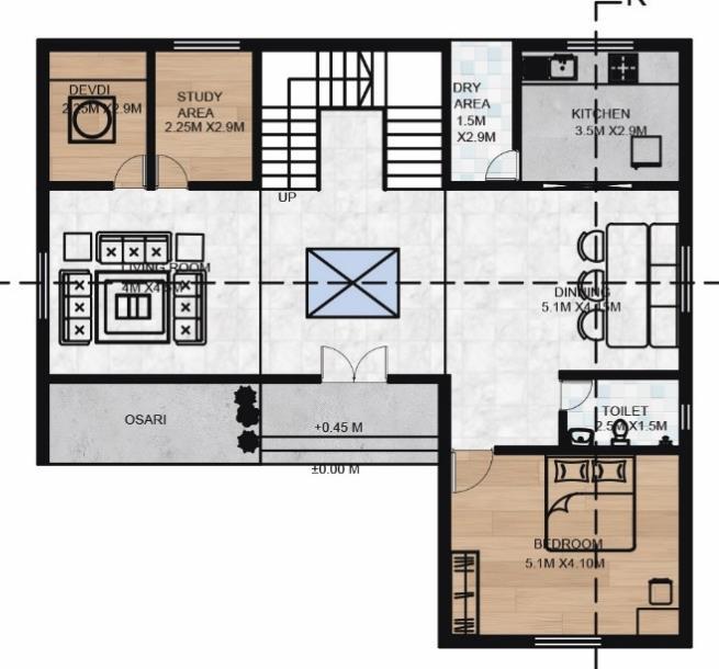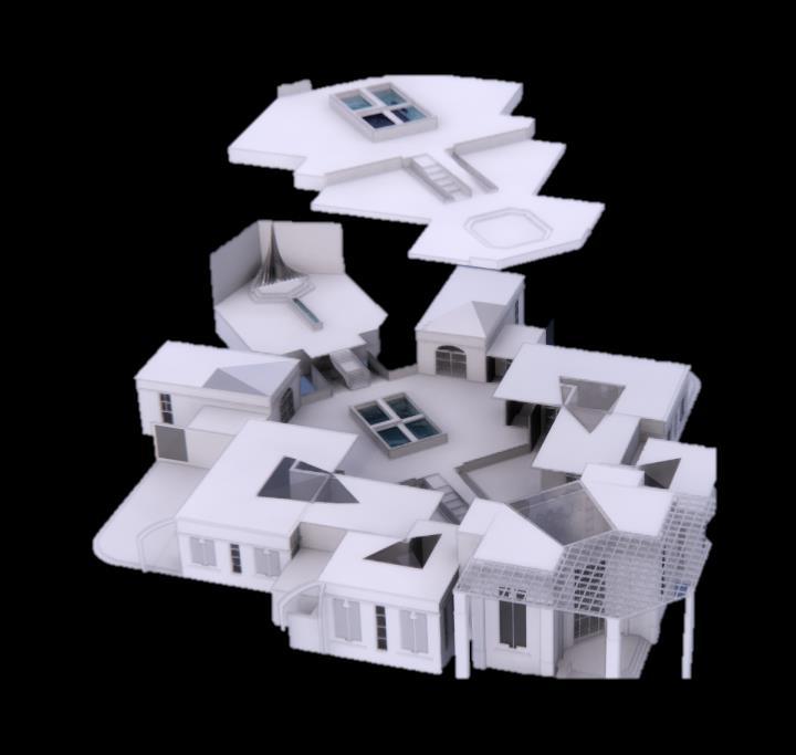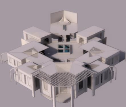 Courtyards in architecture function as a unique way to bring the outside in Courtyards are outdoor spaces typically enclosed on three or four sides and are open to the sky Unlike a backyard, courtyards can be located within the footprint of a building to provide an alternate form of recreation space CONNECTION WITH NATURE Courtyards provide an opportunity to bring the outdoors in, giving access to natural daylight, views to outside, and cross ventilation in the summer months One of the biggest advantages of having a courtyard is providing visual and physical access to nature, which has been proven have a positive benefit on mental physical health If centrally located the building, multiple rooms or spaces home can share these benefits ENCLOSED ROOM OPEN TO SKY D ENTRANCE Courtyard represents the four corners of the Universe If this heat exchange reduces roof surface temperature to wet bulb temperature of air, condensation of atmospheric moisture occurs on the roof and the gain due to condensation limits further cooling Cutting center part of the block for courtyard effect Courtyard gave in a diagonal line NESW direction so natural sunlight will reflect on internal glass elements and will give colorful reflection inside the exhibition hall Providing semi-open space courtyard effect in between blocks placement • WADA STYLE FOR RESIDENTIAL UNITS The 'Wada' Architecture, also referred to as Courtyard Architecture is the residential style of Maratha Architecture which has made a contribution in Residential Architecture This type of Architecture style dealt perfectly with Air and Light, resulting to great ventilation of both Exhibition building with center courtyard effect and vernacular architecture style. factory building courtyard effect provided in between admin area and factory outlet to cut off public and private spaces. As per location is Karad the wada style houses are commonly seen there so keeping it same so the family will feel the emotion of their old house