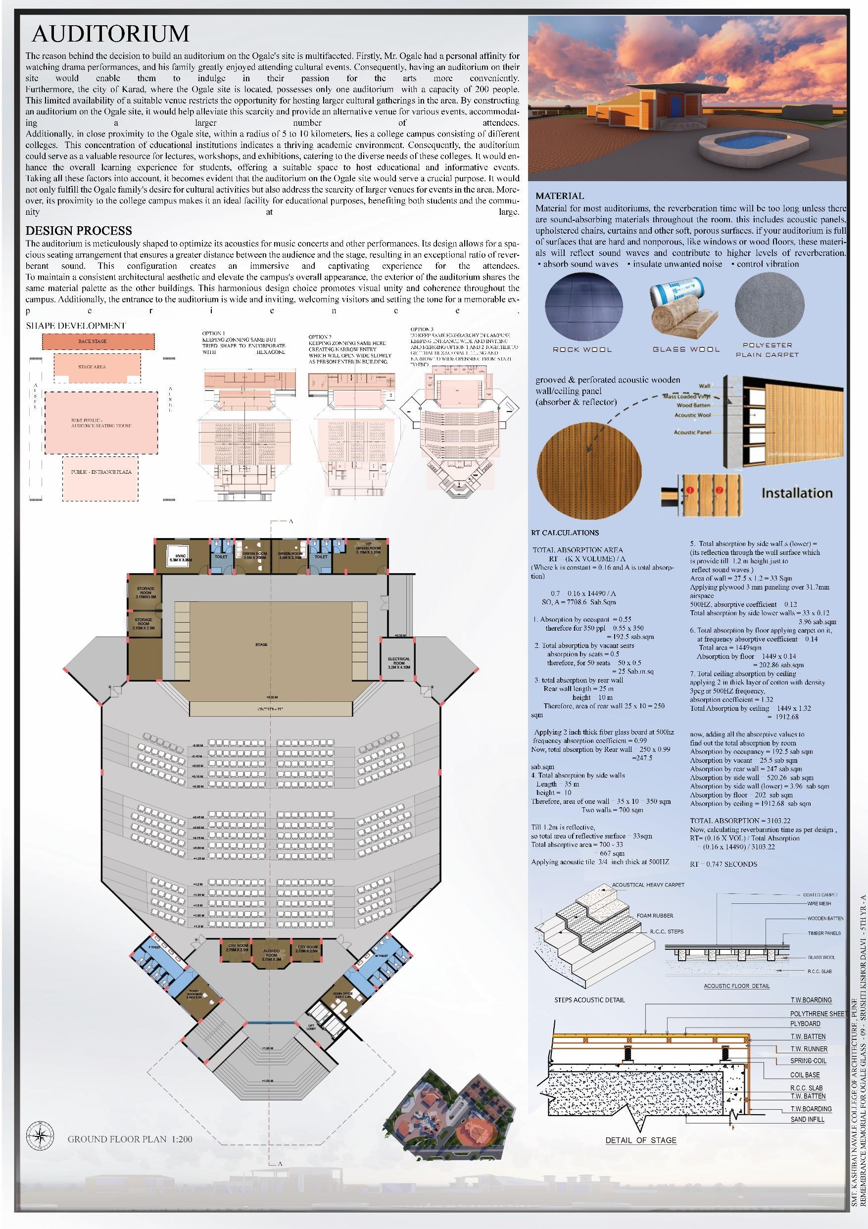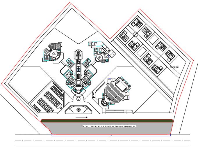 The Auditorium needs to be away form the other buildings Due to the noise they make, keeping them middle east portion of the site could help in smoother functioning of the auditorium