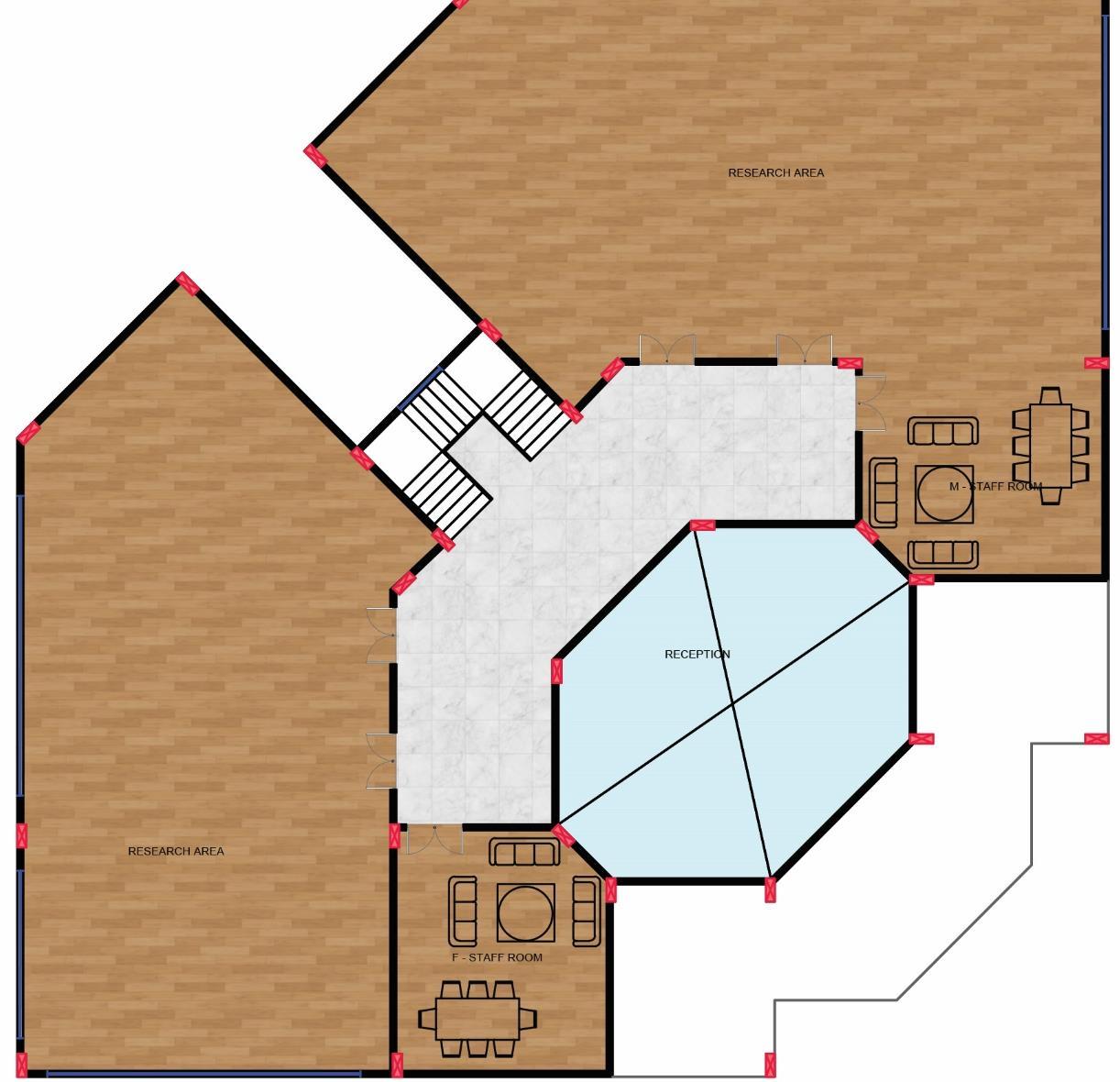 The public areas of the research building serve as spaces for exhibitions, Library, where people from all walks of life can come and explore the rich cultural and historical significance of the Indian glass industry These areas facilitate engagement and learning, allowing the new generation to develop a deep appreciation for the craft