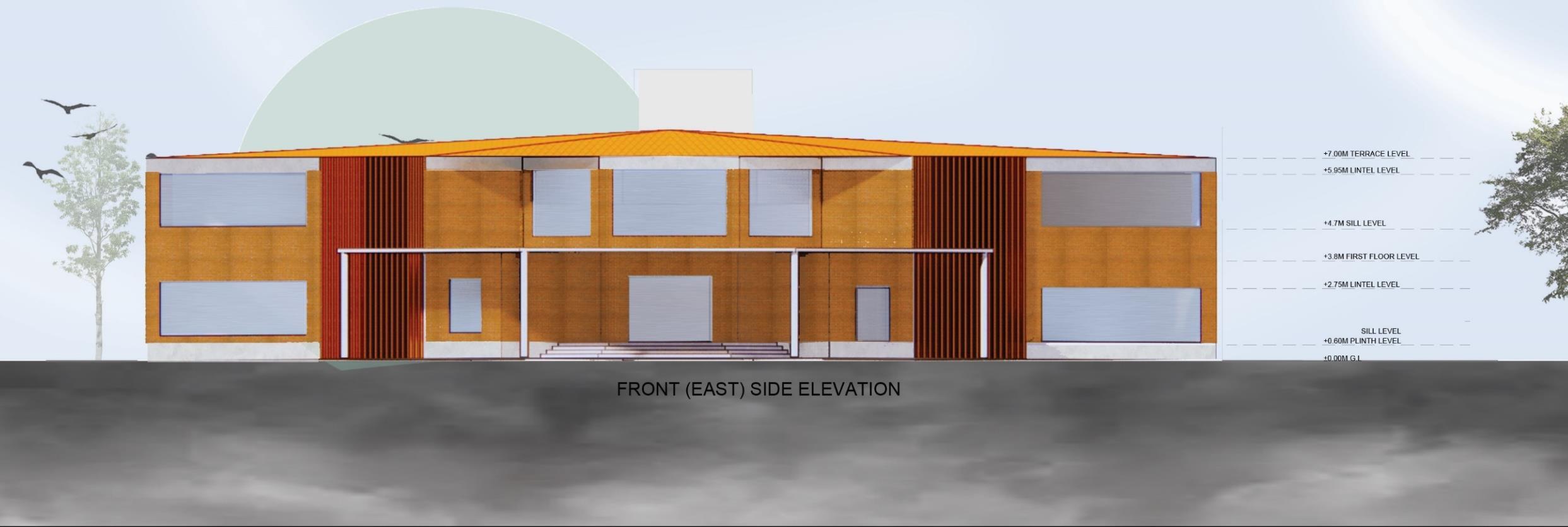 2.Form and Shape: In consideration of the architectural style of Karad and Ogalevadi, where the mill buildings were traditionally designed in a vernacular fashion, it is recommended to maintain the presence of the mill by adopting a square-shaped building design. To enhance the aesthetics and functionality, incorporate hexagonal elements to create wider openings within the structure.Additionally, for optimal natural ventilation, align the building forms diagonally by orienting the site in the northwest-southeast direction. This approach will not only pay homage to the traditional mill architecture but also ensure a comfortable and well-ventilated environment within the memorial.
