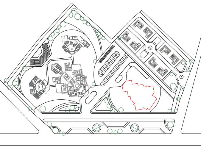 The main building of camous which represents the history of site needs to be located at centre of site or campus and demand visibility frontage from main road and secondary road to The main use of this building is to attract in more users and hence it needs to be near main road, so it is easily visible from the main access road