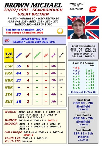 PW 50 - YAMAHA 80 - MECATECNO 80 GAS GAS 125 - BETA 125 - 250 - 270 SHERCO 290 - GAS GAS 300 Fim Junior Champion 2007 Fim Europe Champion 2008 GREAT BRITAIN 2013 GERMANY Indoor 2009 2010 2011