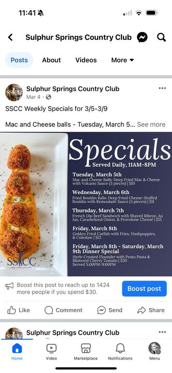 P h o t o b y S t e v e L i t t l e f i e l d 02 SSCC Member Newsletter May/June 2024 ARE YOU FOLLOWING SSCC ON SOCIAL MEDIA? @sscountryclub @sulphurspringscc sulphurspringscc.com Submit Your Story We would LOVE to share your photos, stories, and funny moments in the Member Newsletter! You can submit your cover photos, comics, and more to media@sulphurspringscc com Please make sure all submissions include your full name and member number