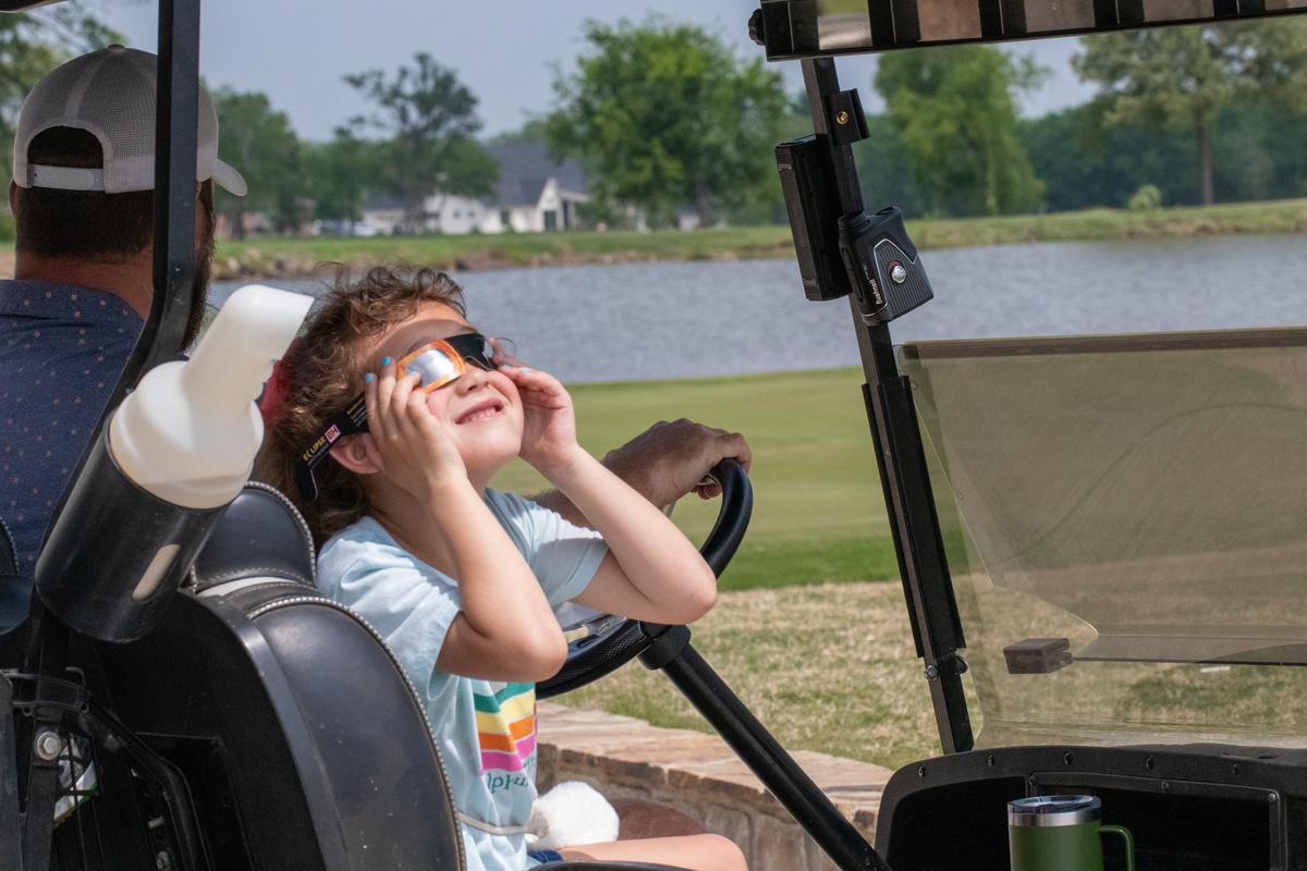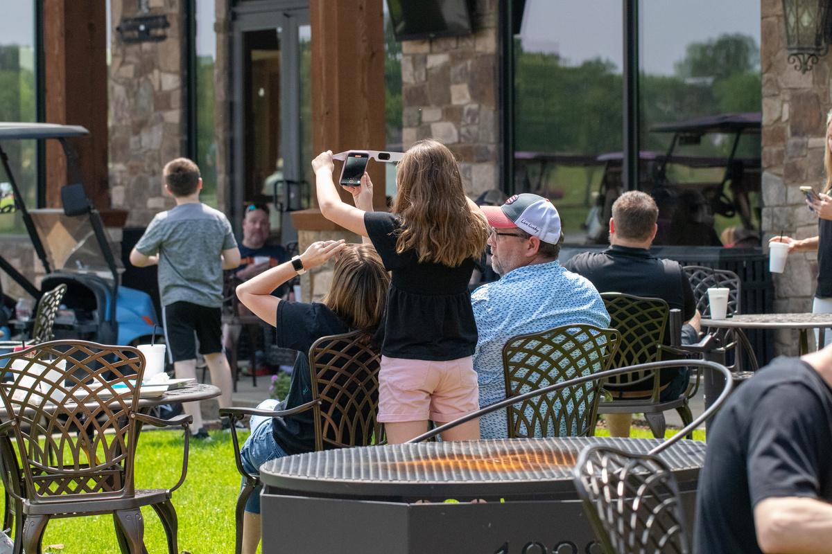 As we all got in for work that morning, a subtle worry crept up about the clouds in the sky, but those fears were quickly resolved when so many of you came in for the 4-person Eclipse Scramble I grabbed a friend and rode out on a golf cart to try and capture some of the teams in action and, to my surprise, the sun decided to show! Then we stopped back at the Clubhouse to try and get a few littles playing on the bounce house and in the simulators, and I enjoyed watching families try their hand at simulator baseball. After cooling off, I made my way to the Bar & Grill to find so many of our Members had stopped in for food and drink specials ahead of the eclipse.