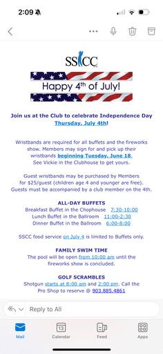 Make sure you’re up to date on SSCC emails & text messages so you don’t miss out on Member events, daily meal specials, Pro Shop sales, and more!