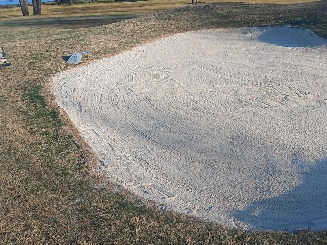 In order to improve playability and appearance, we’ve reworked the sand bunkers around the golf course This involved reshaping the edges, cleaning the drainage and adding new sand Also, we changed the mowing patterns around the green surrounds and lowered the cutting height to give it a more professional look.